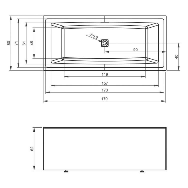 L: 180 B: 80 H: 62 cm