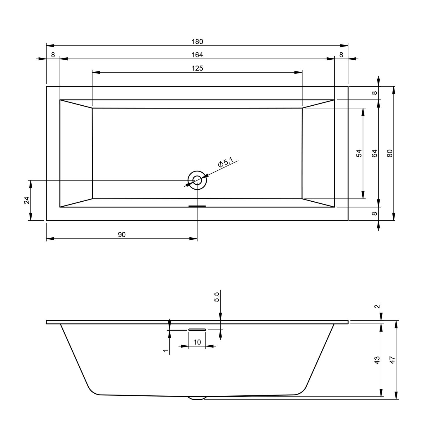 Riho Rethink Cubic Badewanne 180 x 80 cm rechts mit Riho Fall + Joy-System