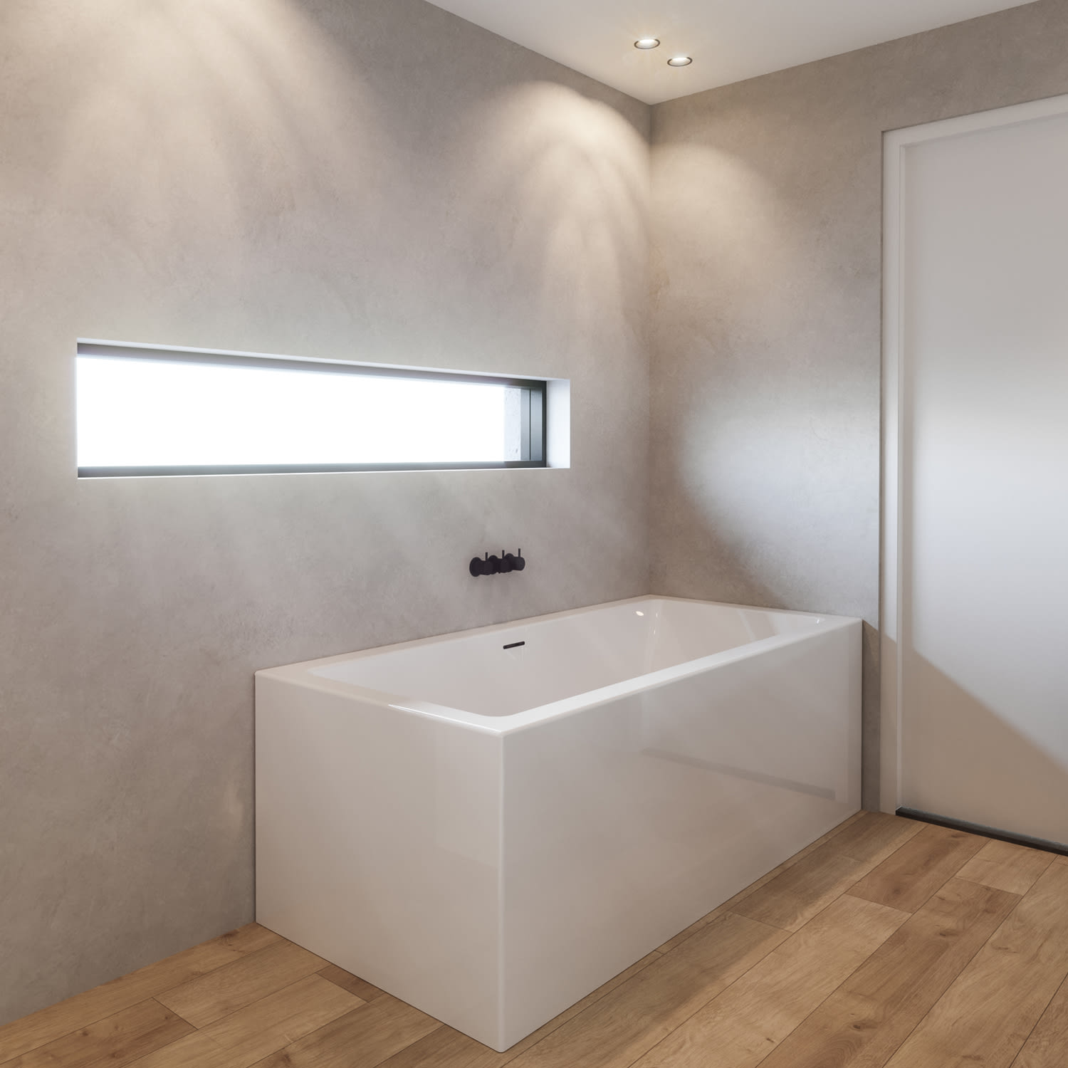 - Einbaubadewanne mit breiteren Wannenrand von 12 cm an der Wand