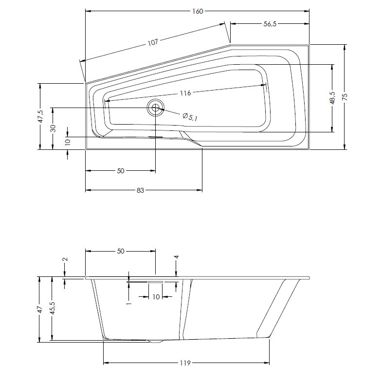L: 160 B: 75 H: 47 cm