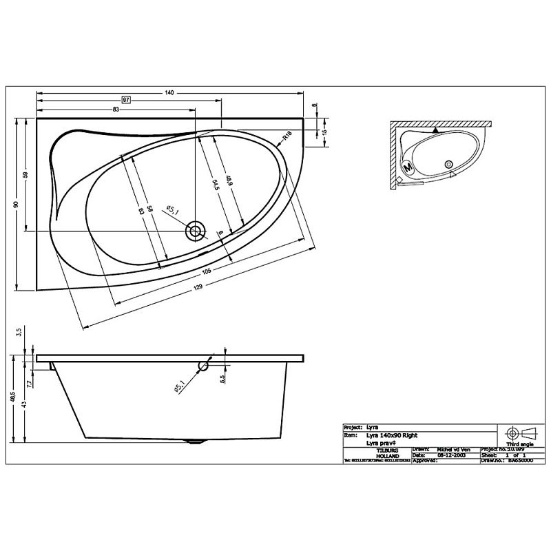 Riho Aryl Raumspar-Badewanne 140 x 90 cm, rechts für Eckeinbau