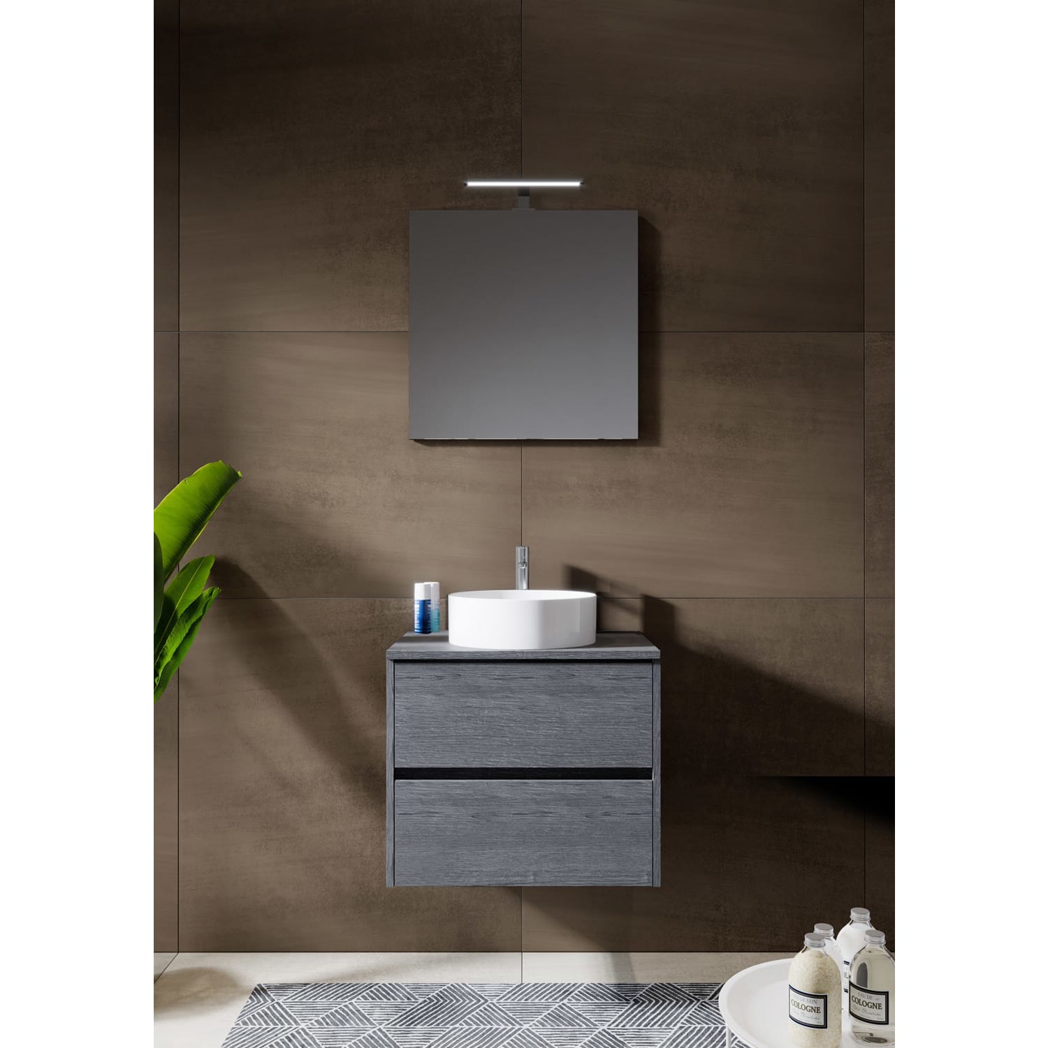 Riho Porto Bowls Badmöbel-Set mit Unterschrank mit 2 Schubladen, Waschtisch und Spiegel, 60 cm
