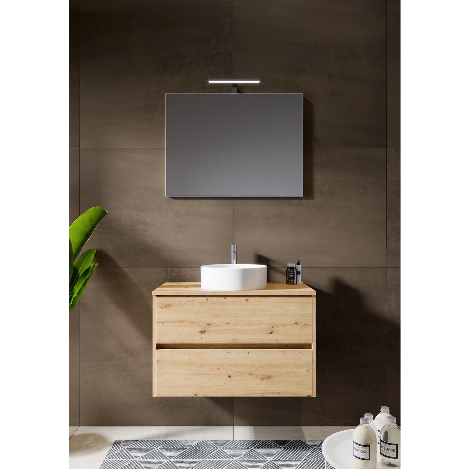 Riho Porto Bowls Badmöbel-Set mit Unterschrank mit 2 Schubladen, Waschtisch und Spiegel, 80 cm