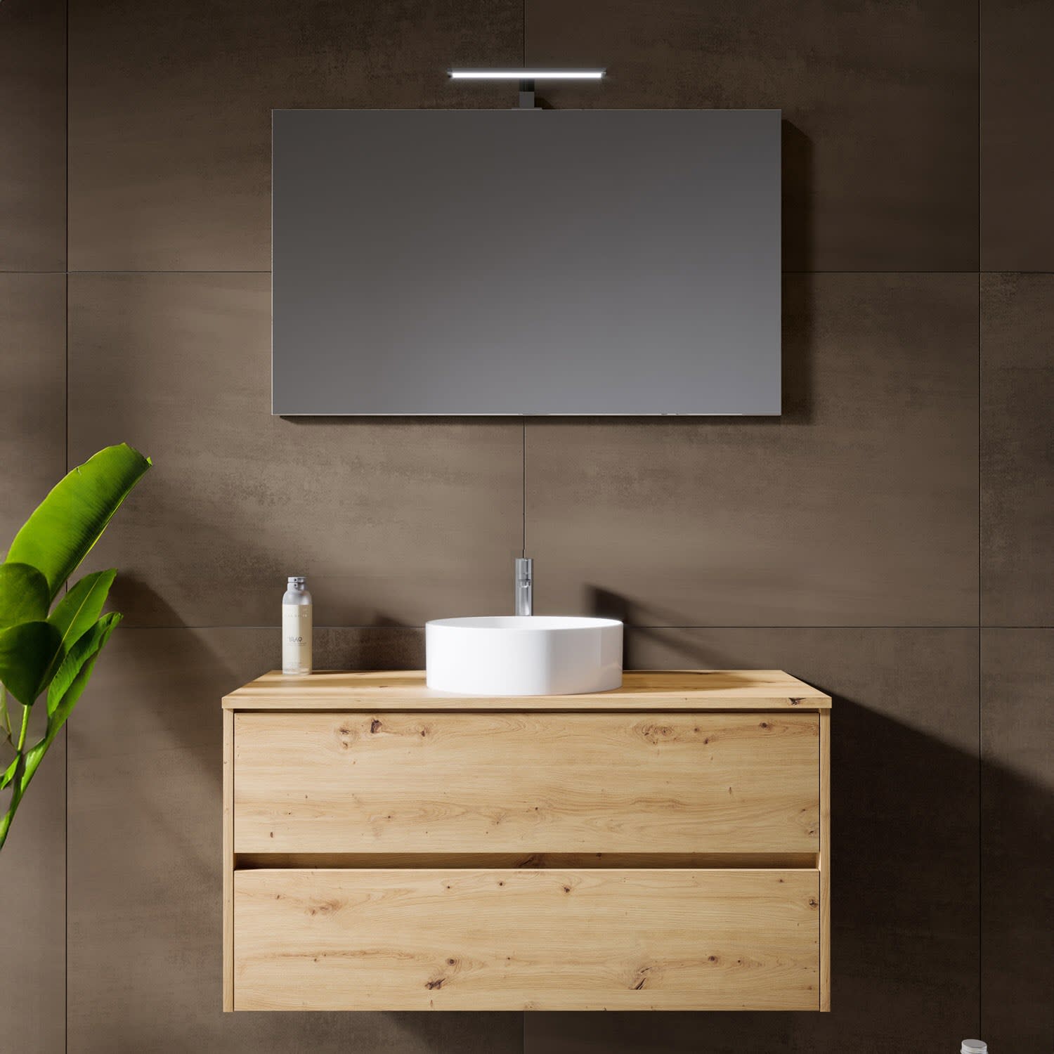 Riho Porto Bowls Badmöbel-Set mit Unterschrank mit 2 Schubladen, Waschtisch und Spiegel, 100 cm