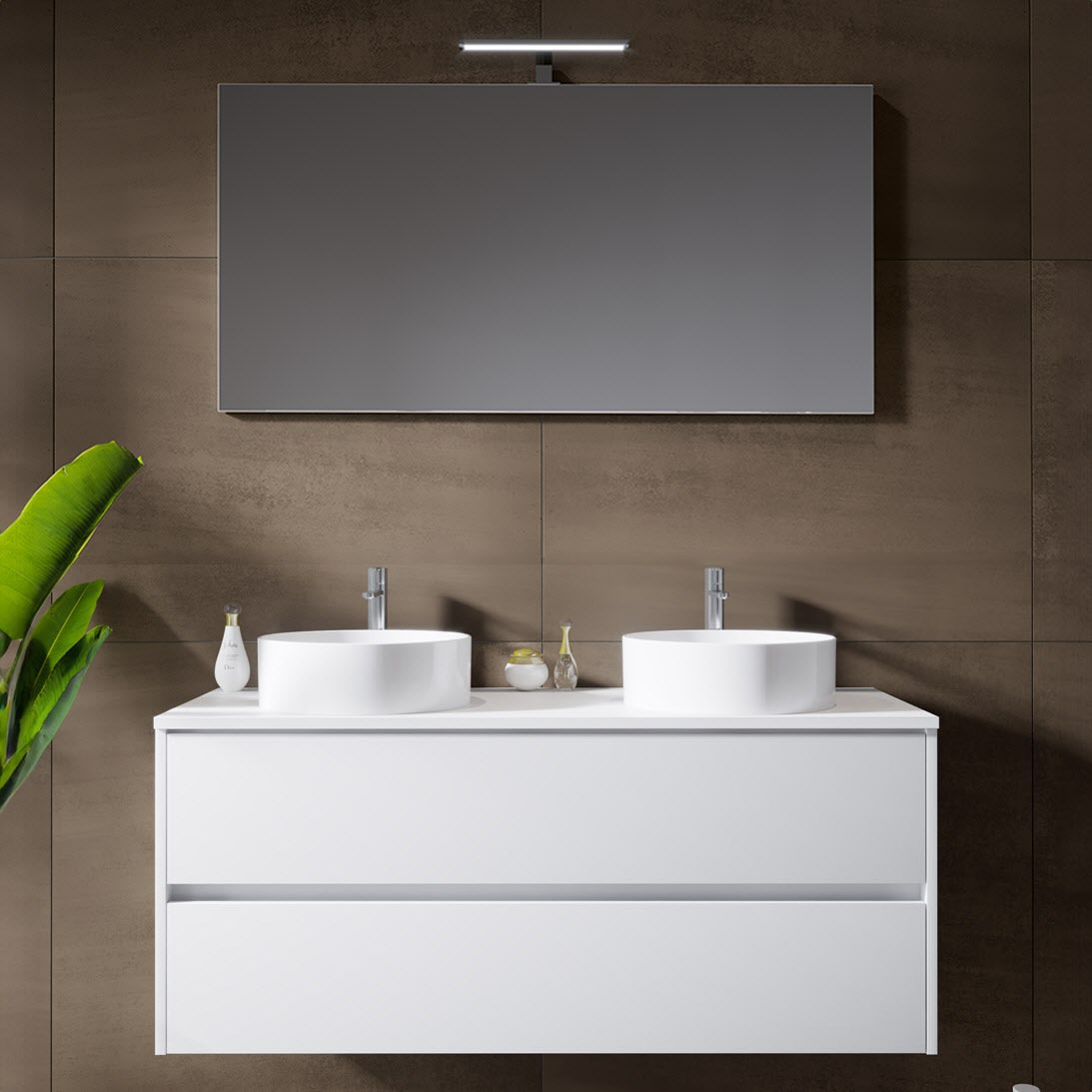 Riho Porto Bowls Badmöbel-Set mit Unterschrank mit 2 Schubladen, Waschtisch und Spiegel, 120 cm