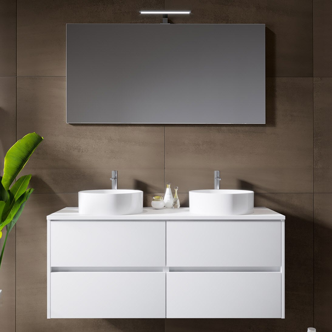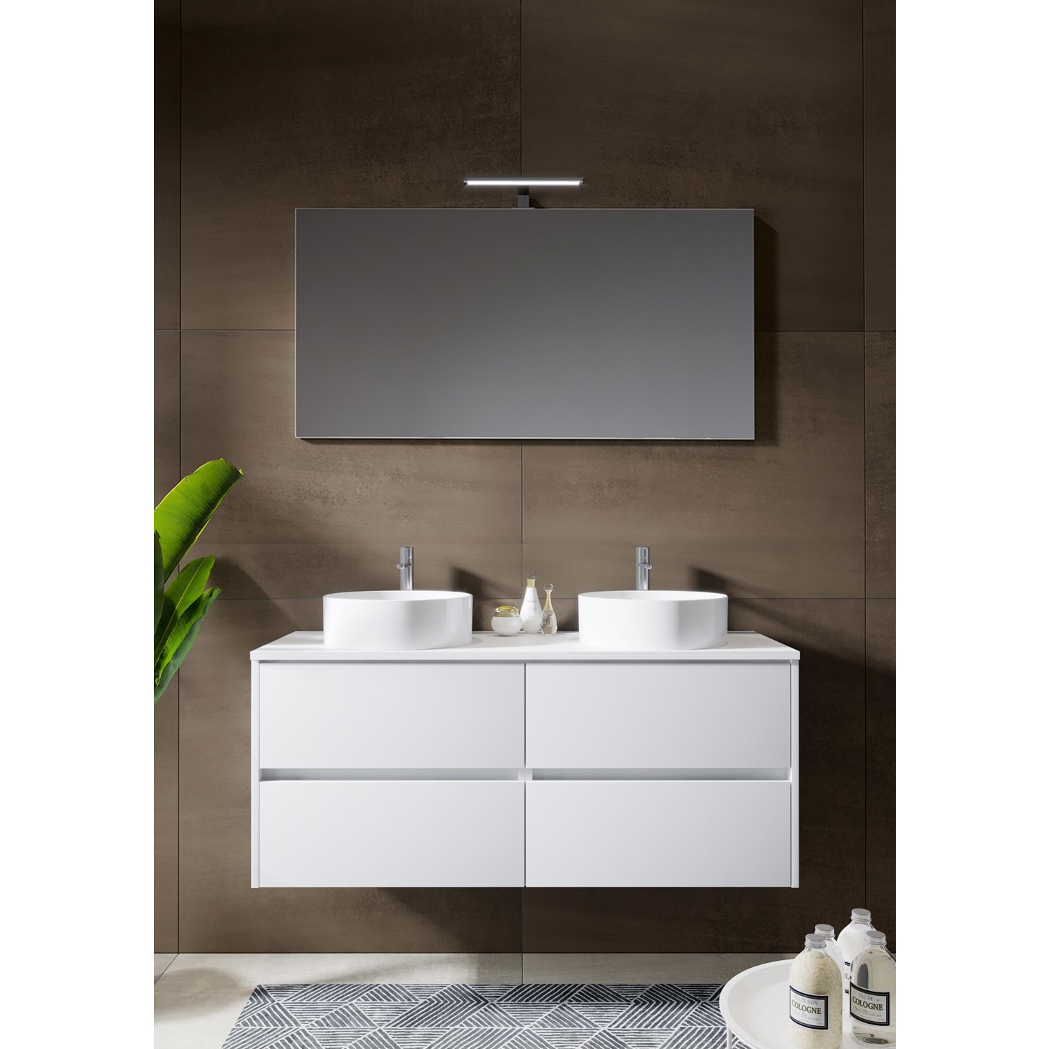 Riho Porto Bowls Badmöbel-Set mit Unterschrank mit 4 Schubladen, Waschtisch und Spiegel, 120 cm