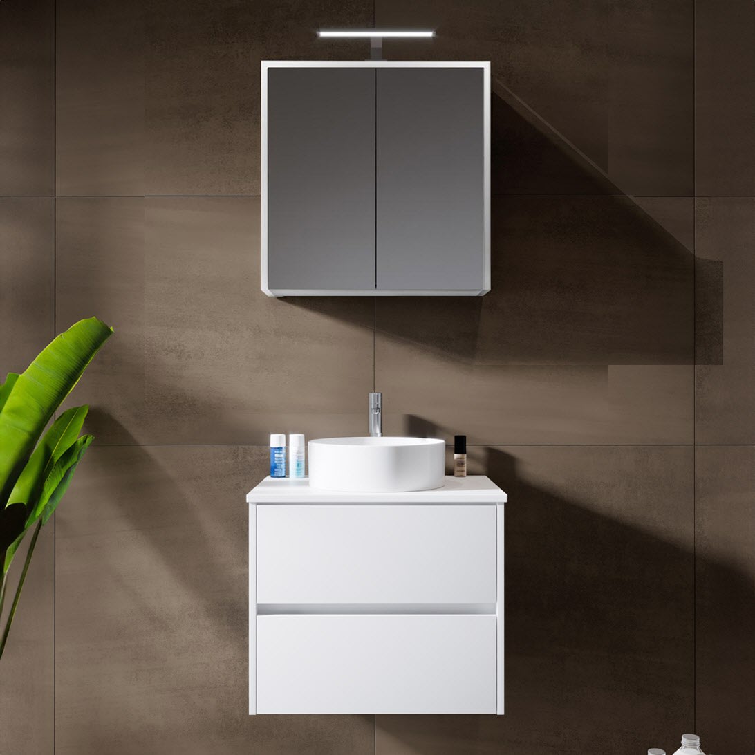 Riho Porto Bowls Badmöbel-Set mit Unterschrank mit 2 Schubladen, Waschtisch und Spiegelschrank, 60 cm