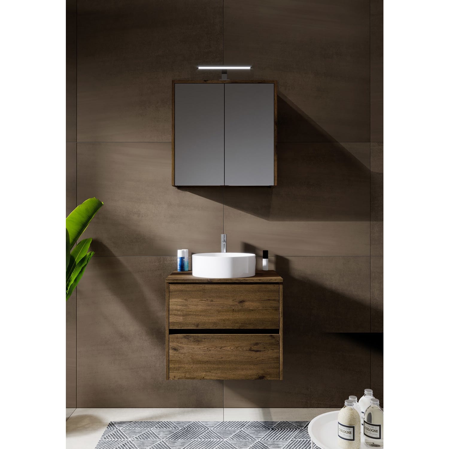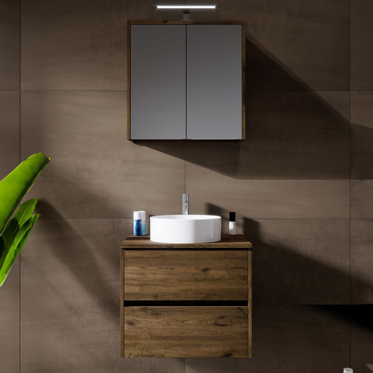 Riho Porto Bowls Badmöbel-Set mit Unterschrank mit 2 Schubladen, Waschtisch und Spiegelschrank, 60 cm
