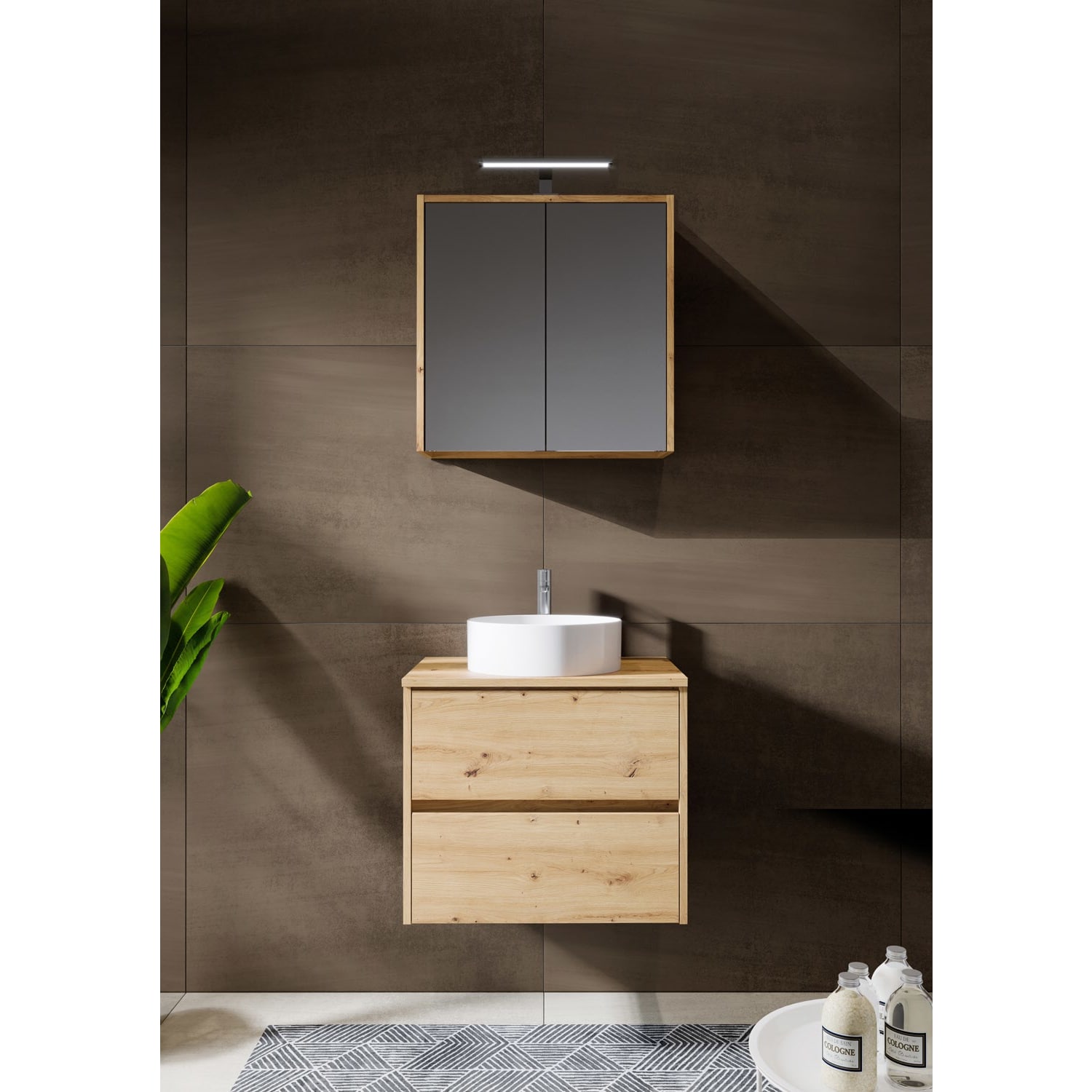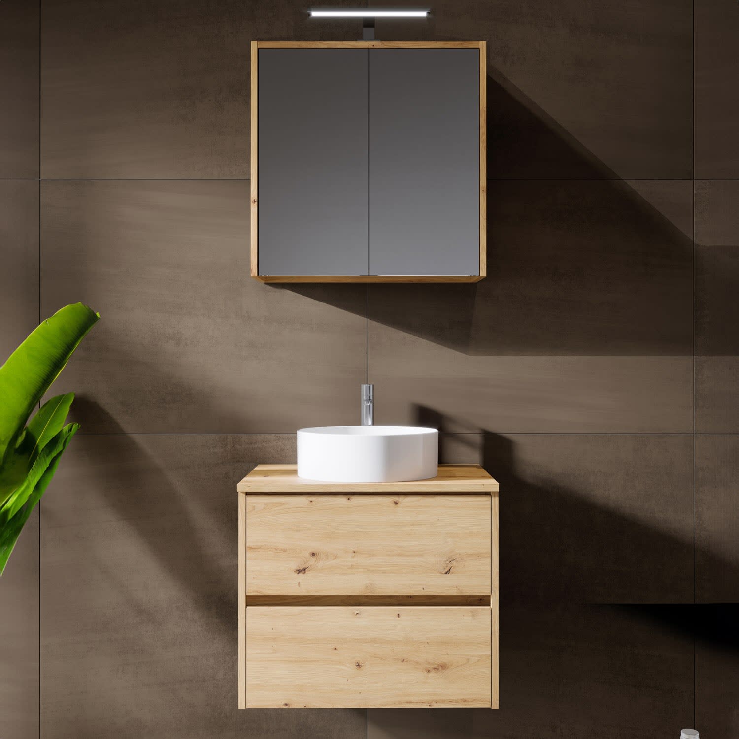 Riho Porto Bowls Badmöbel-Set mit Unterschrank mit 2 Schubladen, Waschtisch und Spiegelschrank, 60 cm