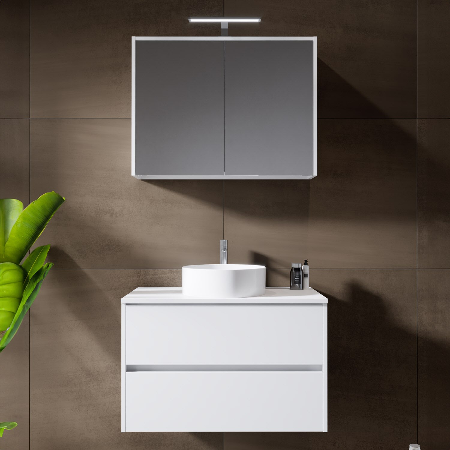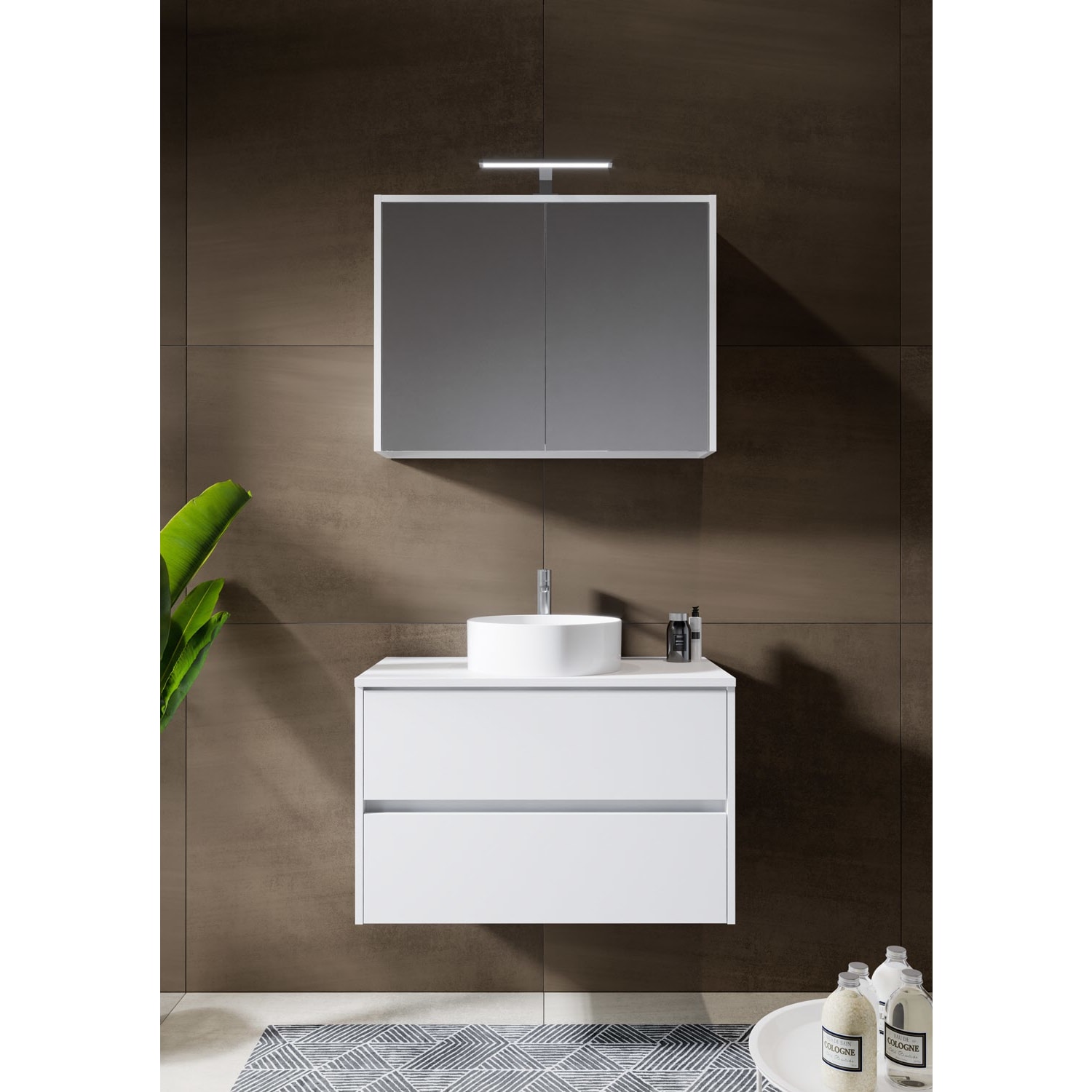 Riho Porto Bowls Badmöbel-Set mit Unterschrank mit 2 Schubladen, Waschtisch und Spiegelschrank, 80 cm