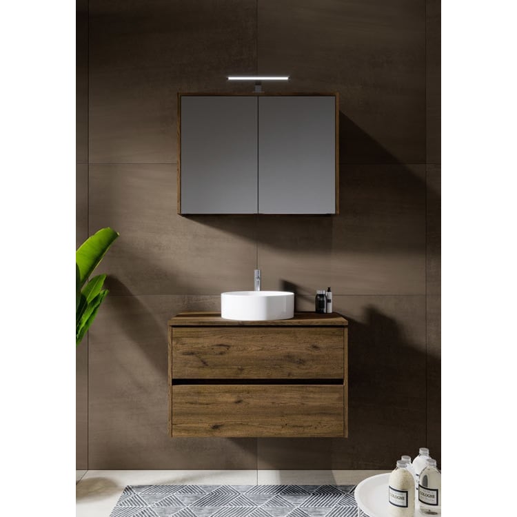 Riho Porto Bowls Badmöbel-Set mit Unterschrank mit 2 Schubladen, Waschtisch und Spiegelschrank, 80 cm