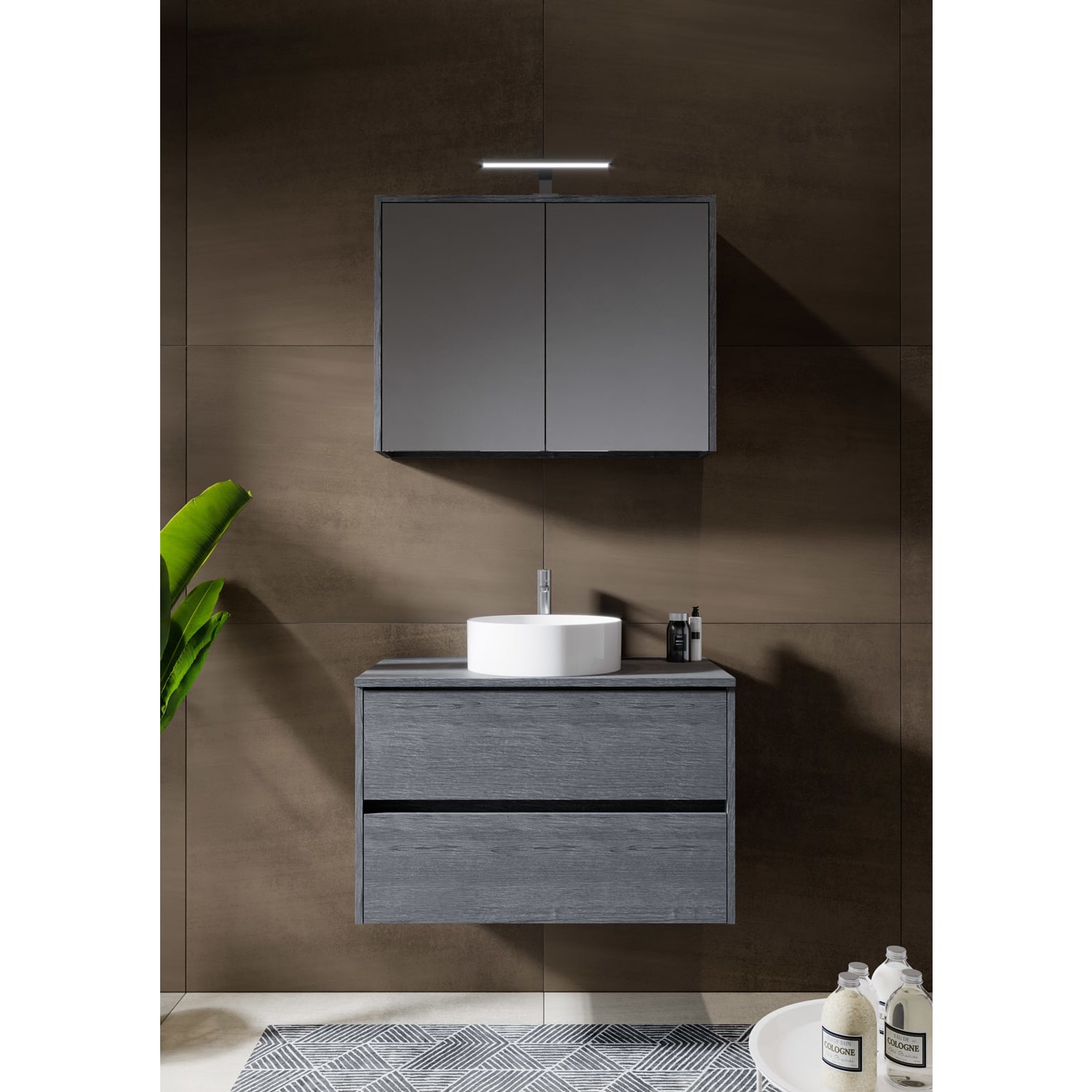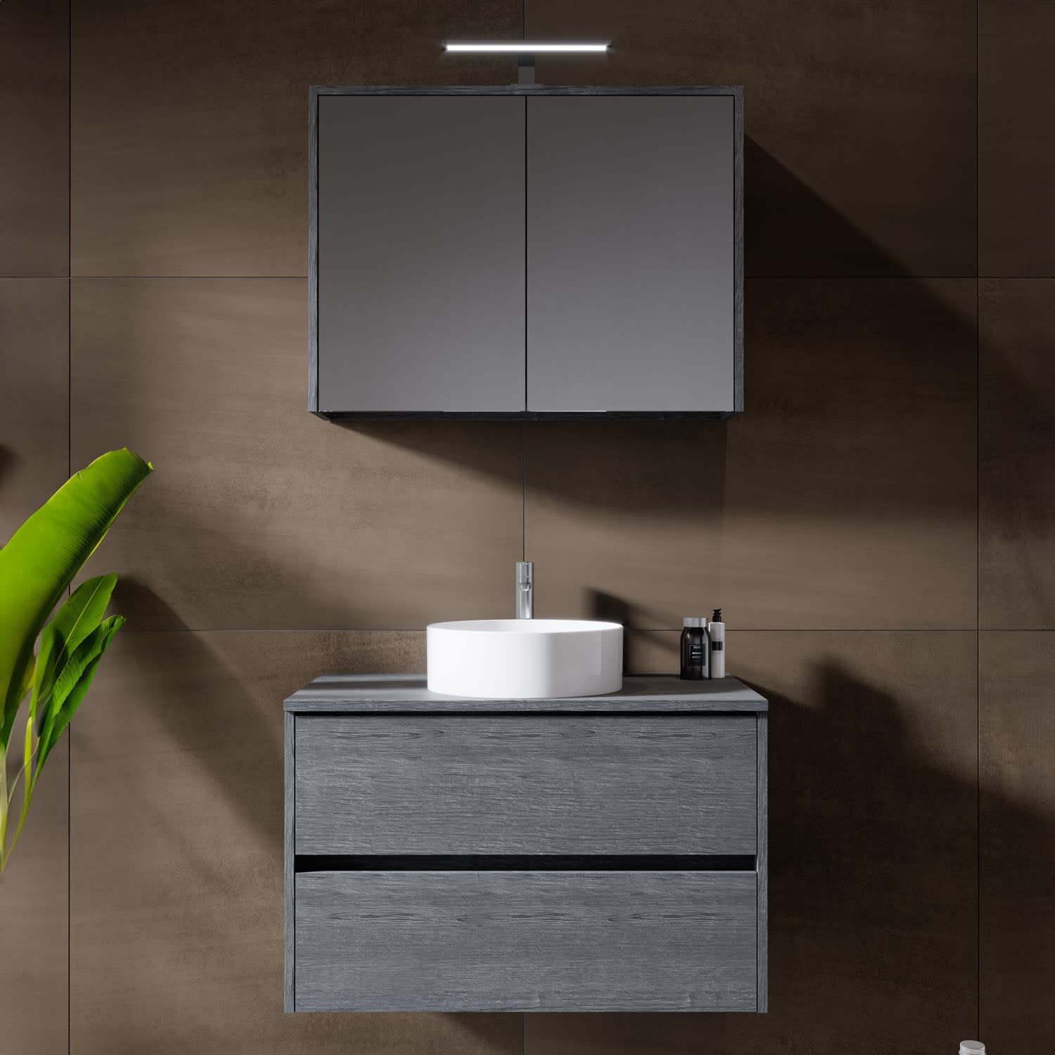 Riho Porto Bowls Badmöbel-Set mit Unterschrank mit 2 Schubladen, Waschtisch und Spiegelschrank, 80 cm