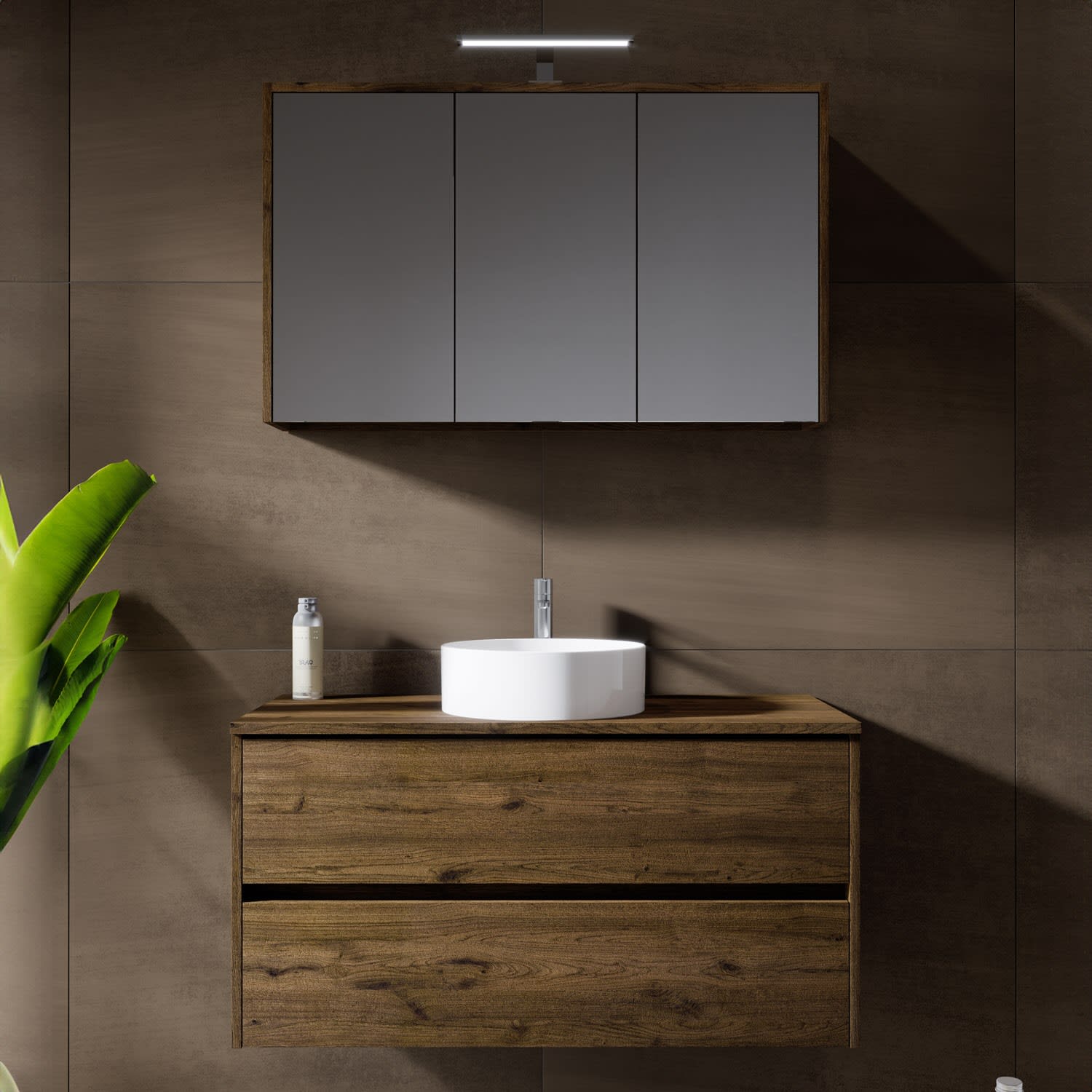 Riho Porto Bowls Badmöbel-Set mit Unterschrank mit 2 Schubladen, Waschtisch und Spiegelschrank, 100 cm