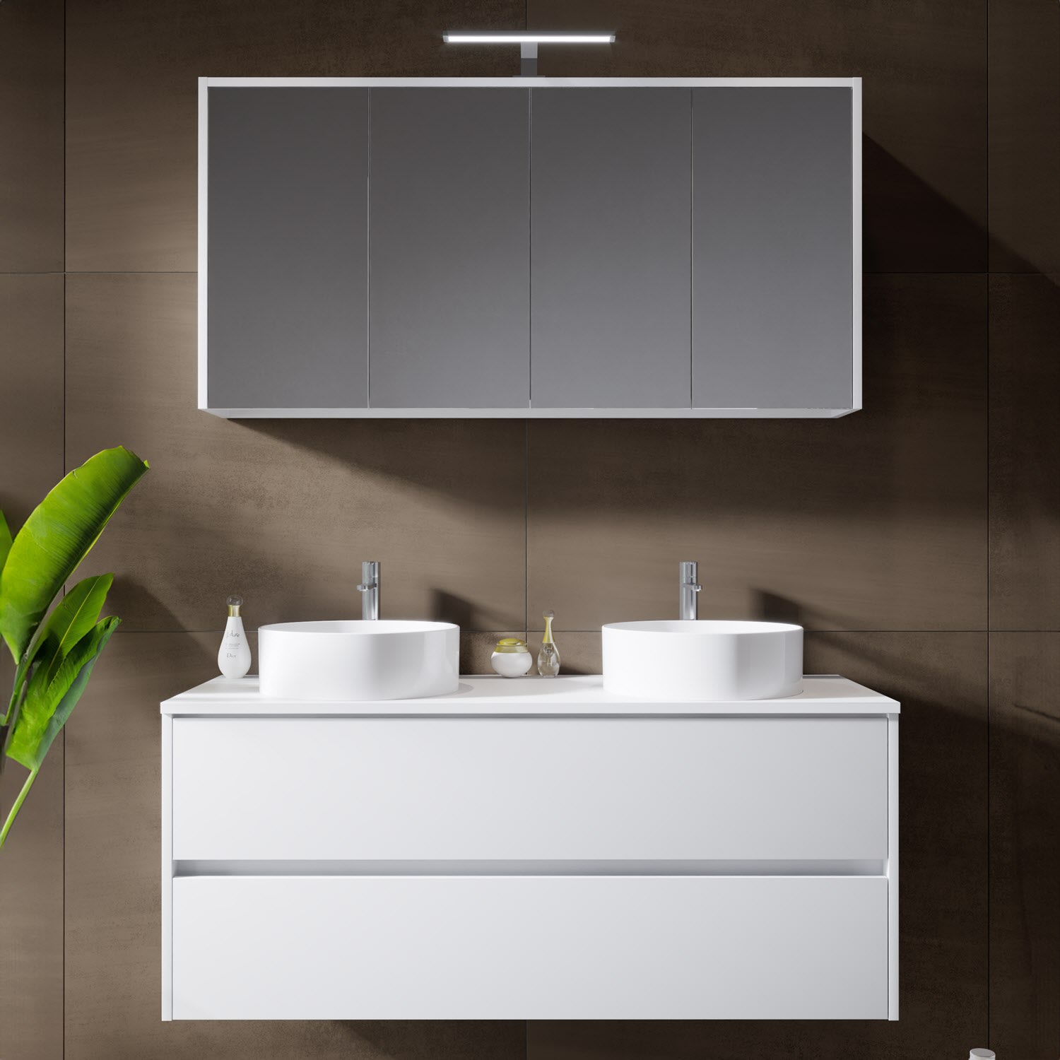 Riho Porto Bowls Badmöbel-Set mit Unterschrank mit 2 Schubladen, Waschtisch und Spiegelschrank, 120 cm