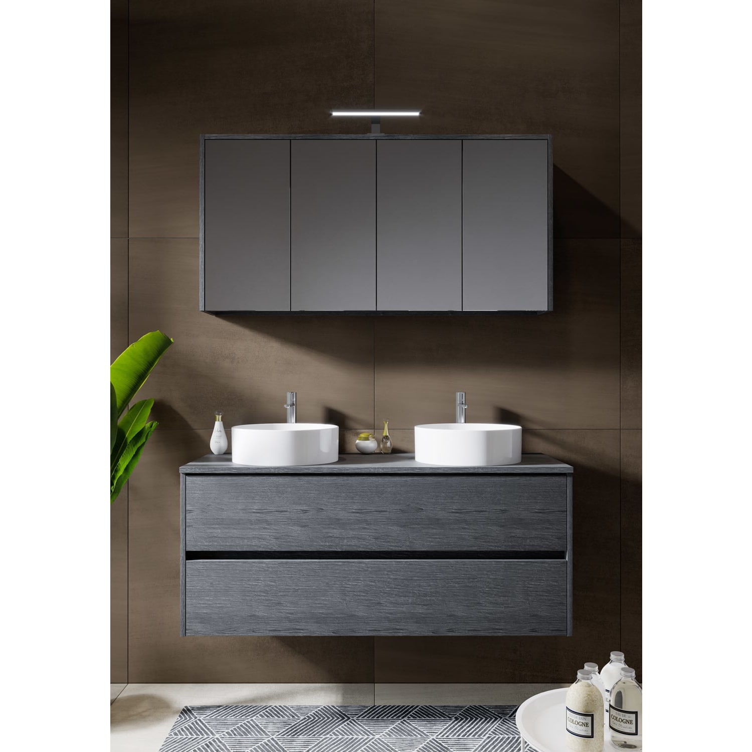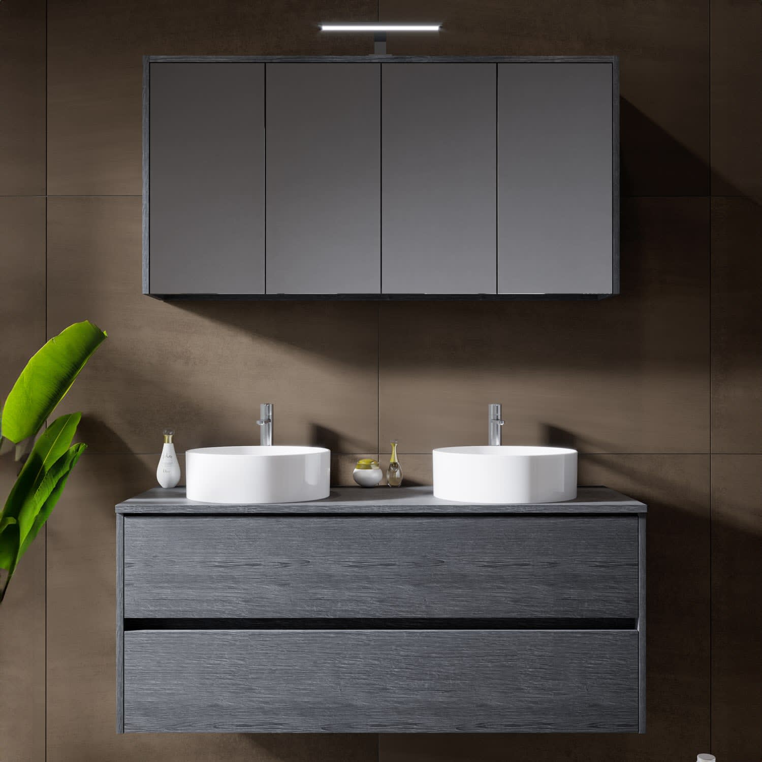 Riho Porto Bowls Badmöbel-Set mit Unterschrank mit 2 Schubladen, Waschtisch und Spiegelschrank, 120 cm