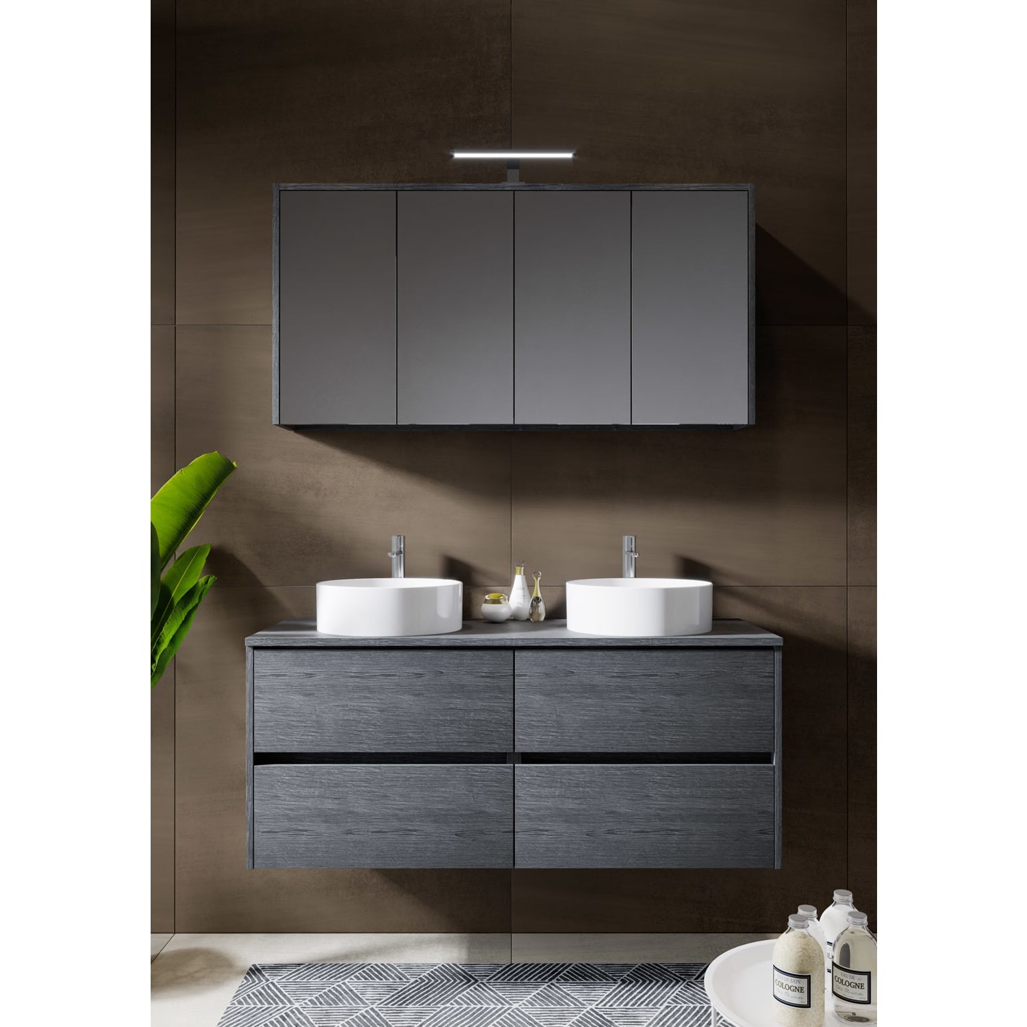 Riho Porto Bowls Badmöbel-Set mit Unterschrank mit 4 Schubladen, Waschtisch und Spiegelschrank, 120 cm
