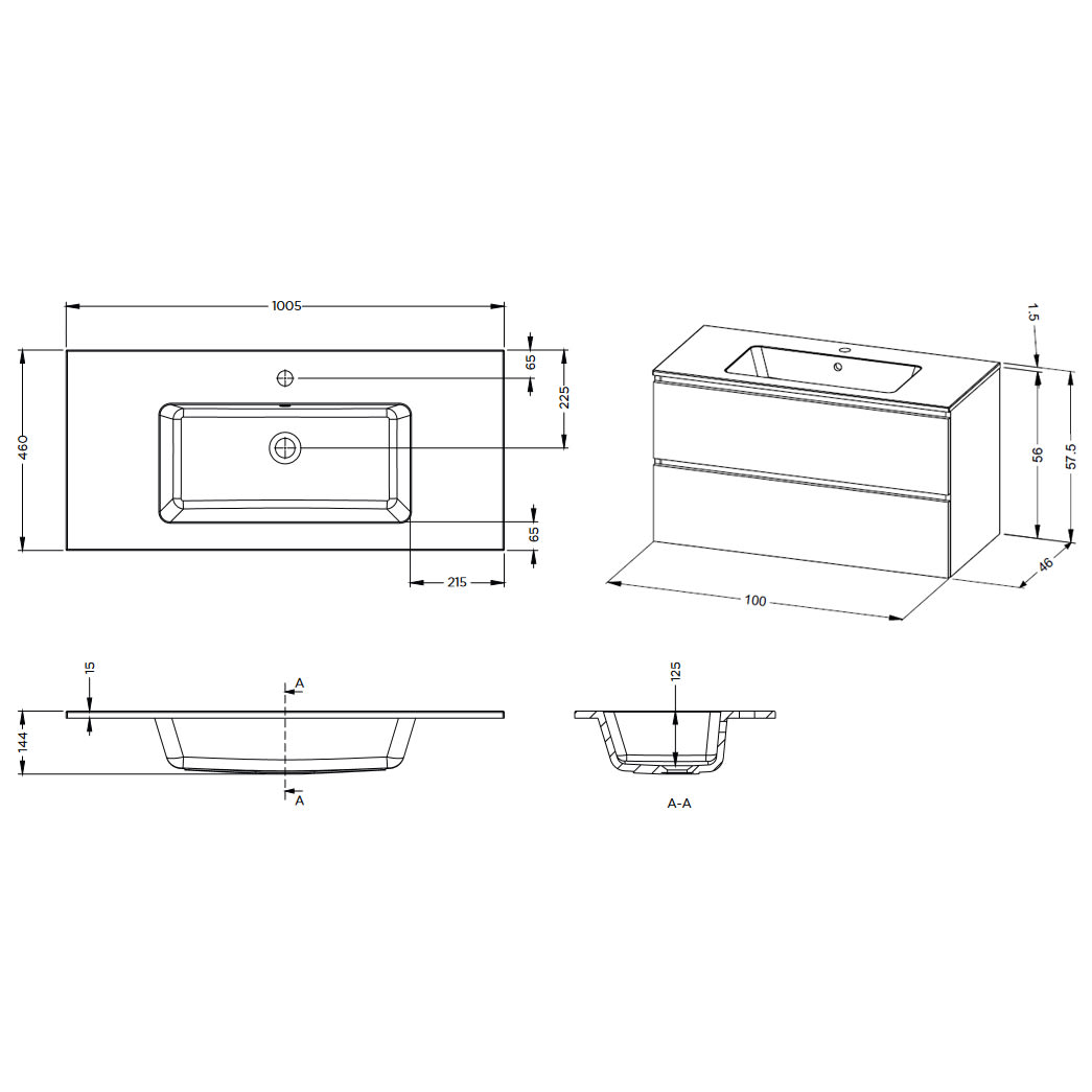 Riho Spring DEW Waschtisch mit Unterschrank, 2 Schubladen 100 cm