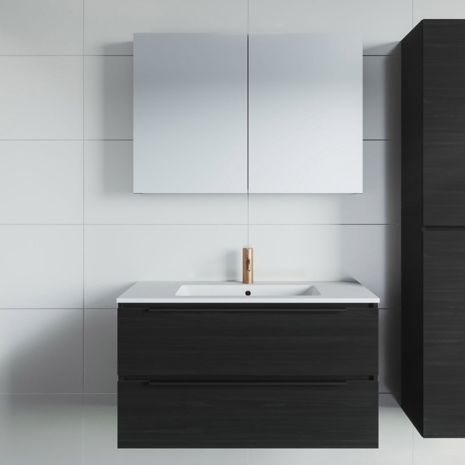 mit Spiegelschrank, Schubladen in klassischer Optik
