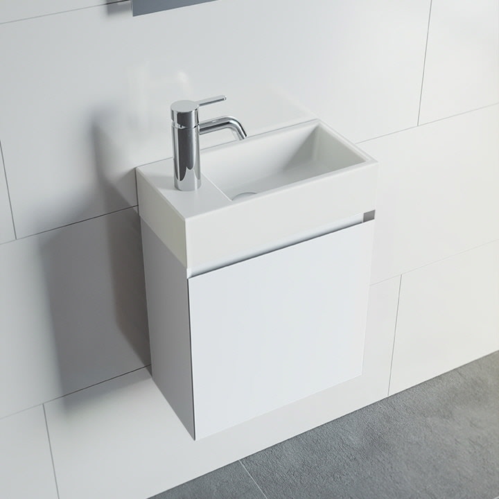 Riho Spring RISE Waschtisch mit Unterschrank für Gäste WC, 1 Tür, 40 cm, mit Gehrung, Becken rechts