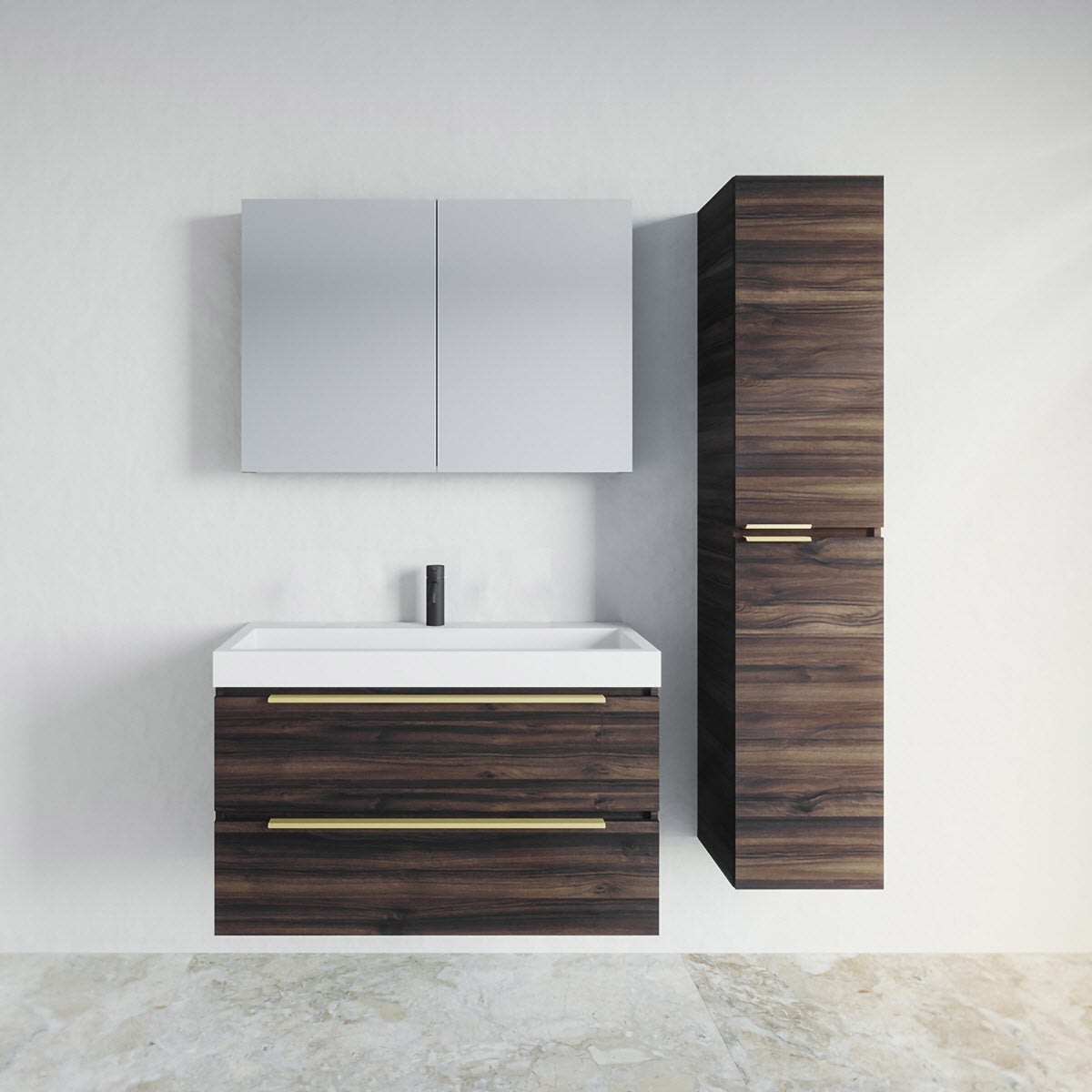 mit Spiegelschrank, Schubladen in klassischer Optik
