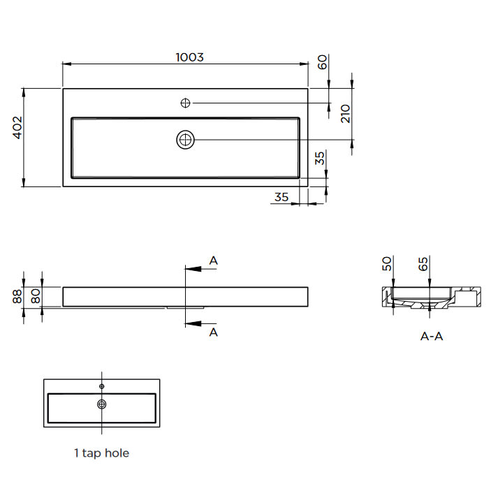 1 Hahnloch mittig
