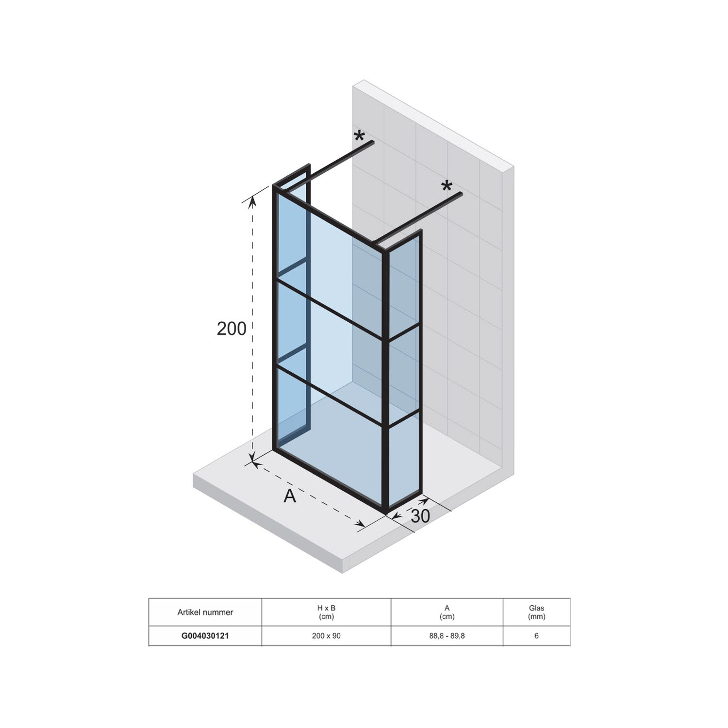 Riho Grid 404 Walk-trough Duschwand 90 cm