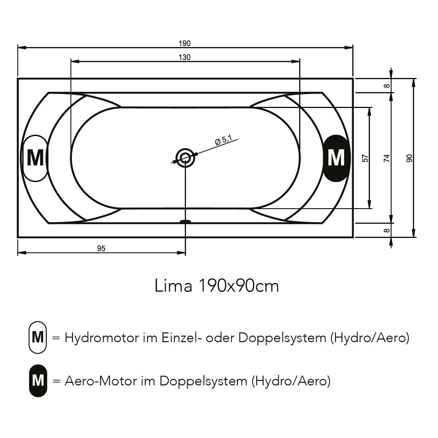 Riho Lima 190 x 90 cm Easypool 3.1 mit pneumatischer Bedienung