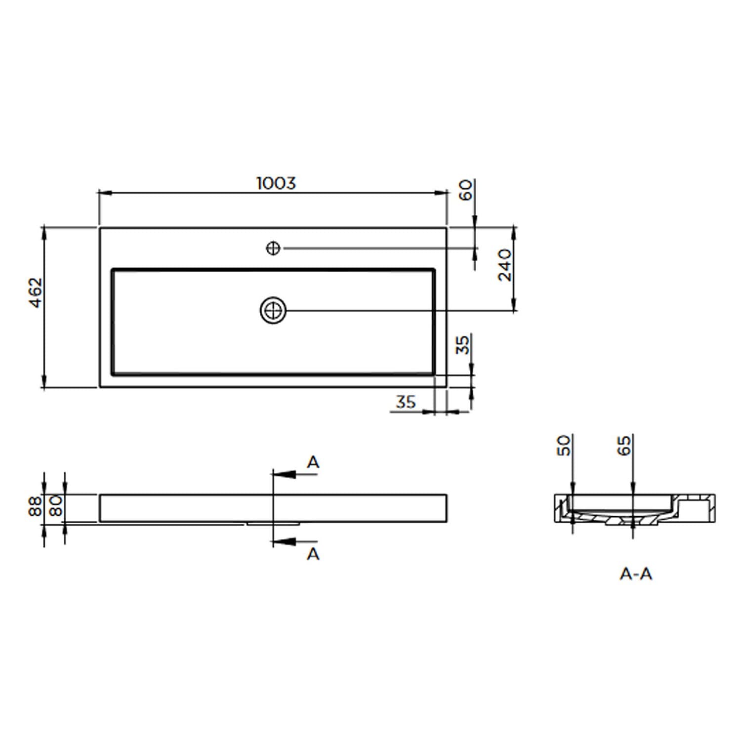Riho Spring Vow 46 Aufsatz-Waschtisch 100 x 46 cm mit 1 Hahnloch