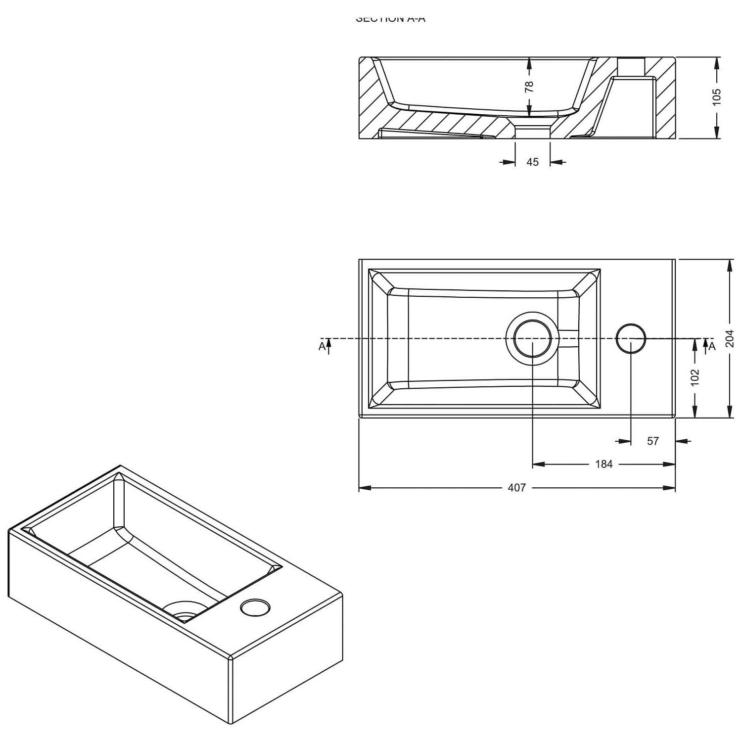 Riho Tiny Wash Waschtisch 41 cm mit 1 Hahnloch rechts