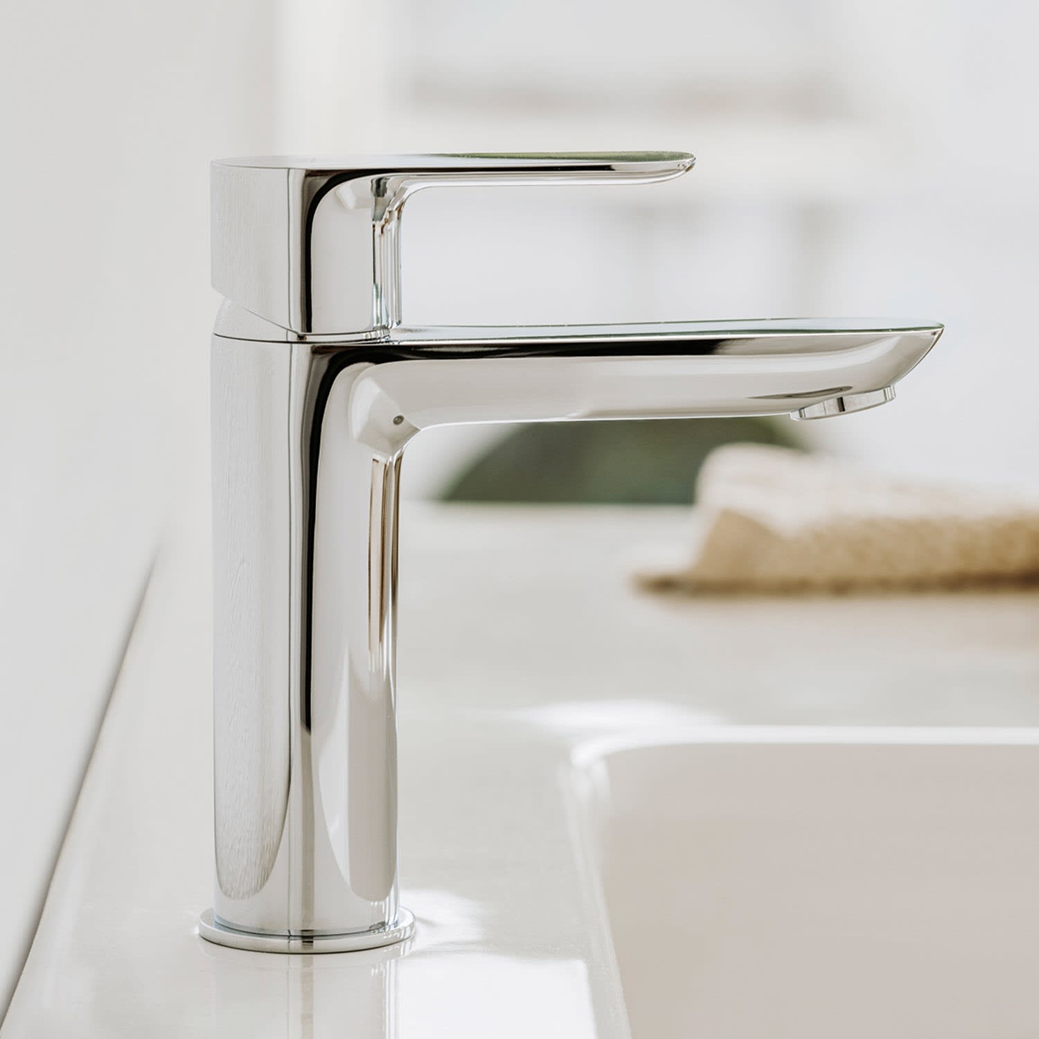 Die Armaturenkollektion Cala bietet Lösungen für jeden Badbereich: Waschtisch, Bidet, Badewanne und Dusche. Cala ist eine Armaturenkollektion mit schlankem und modernem Design. Der elegant flache Griff steht in perfekter Harmonie mit der geradlinigen Form des Auslaufs. Der Einhebel-Waschtischmischer ist ein formschönes Highlight am Waschtischrand. Er überzeugt besonders in Sachen Bedienkomfort und Wassersparen. Die Cala Waschtischarmaturen sind in 3 Höhen erhältlich, welche die perfekte Kombination für alle Arten von Waschtischen bieten, egal ob wandhängend, als Einbau- oder Aufsatz-Variante.