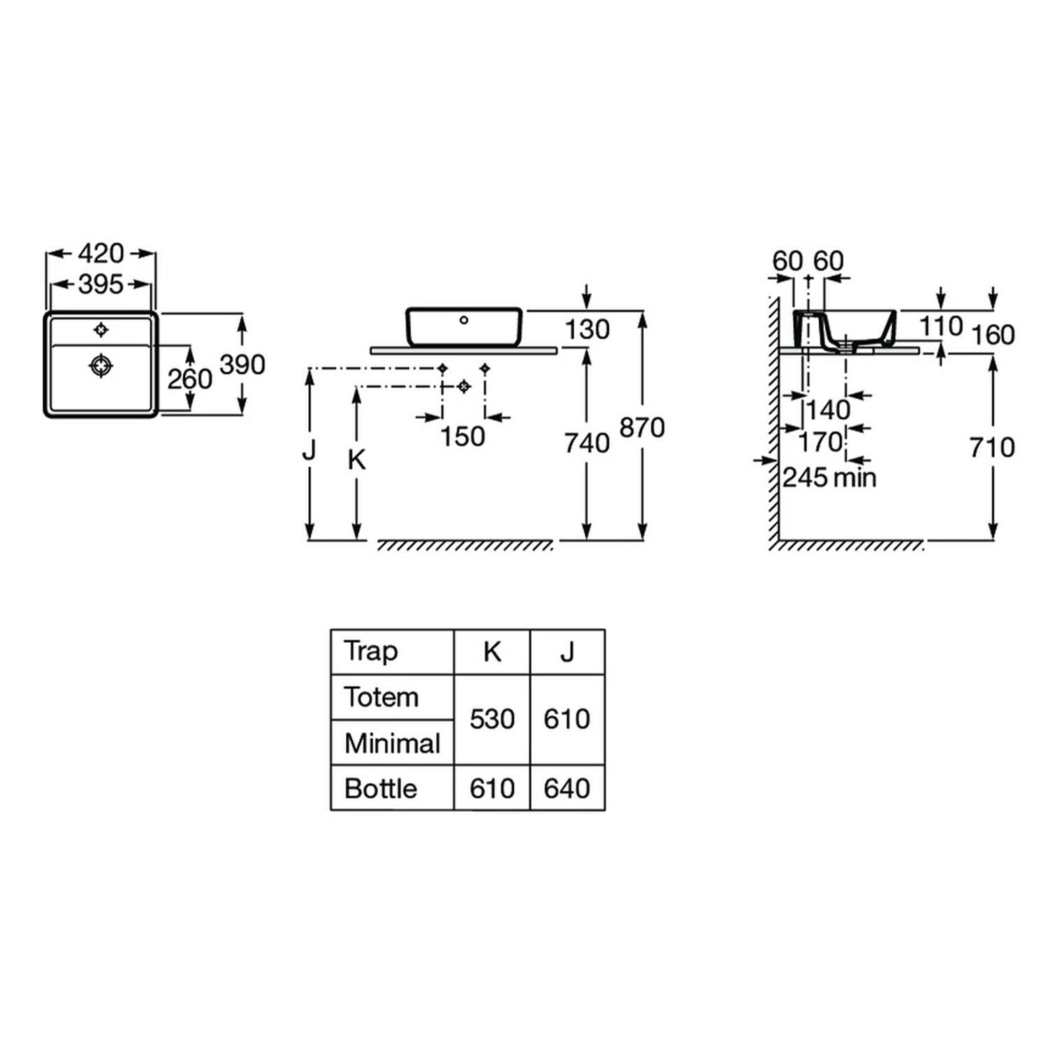 Roca The Gap Aufsatzwaschtisch, rechteckig 42 cm