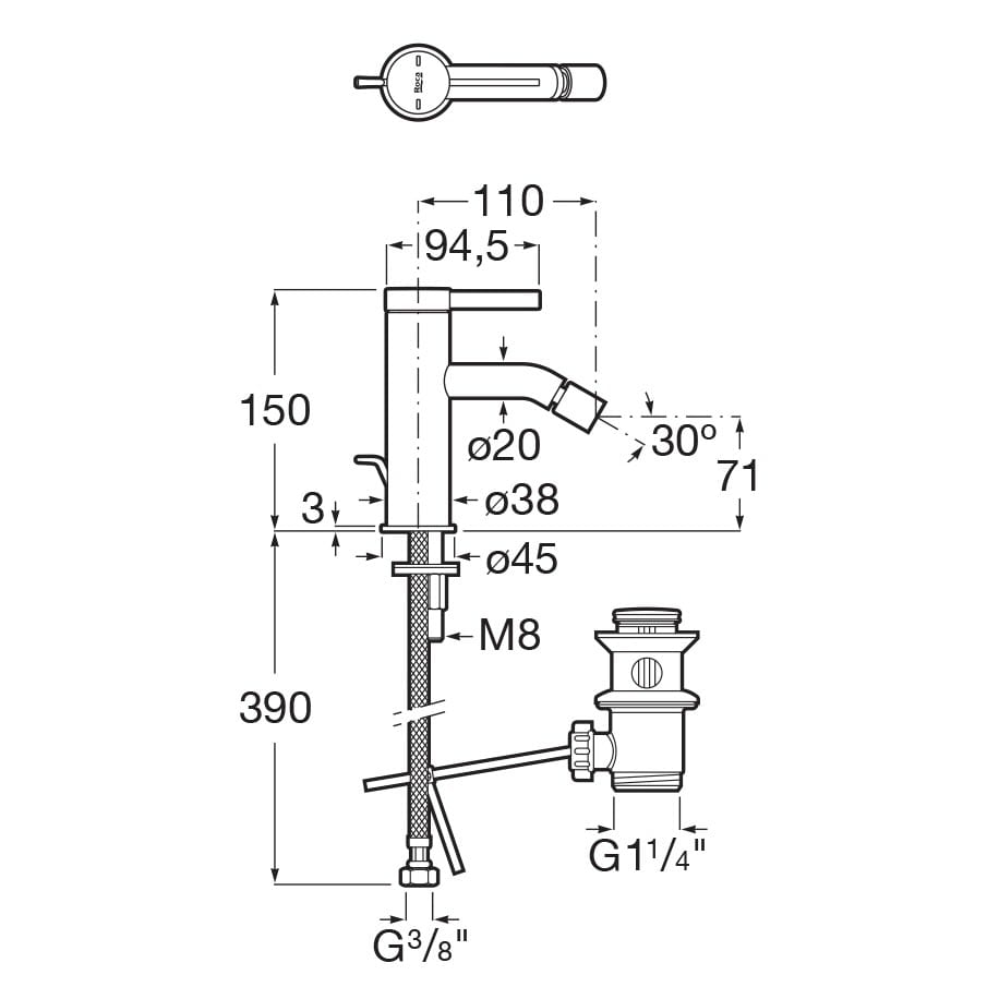 Roca Ona Einhebel-Bidetmischer mit Ablaufgarnitur
