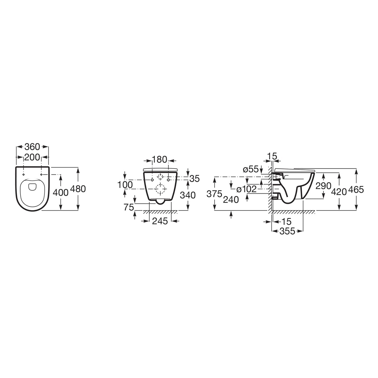 Roca Ona Wand-WC kompakt, spülrandlos