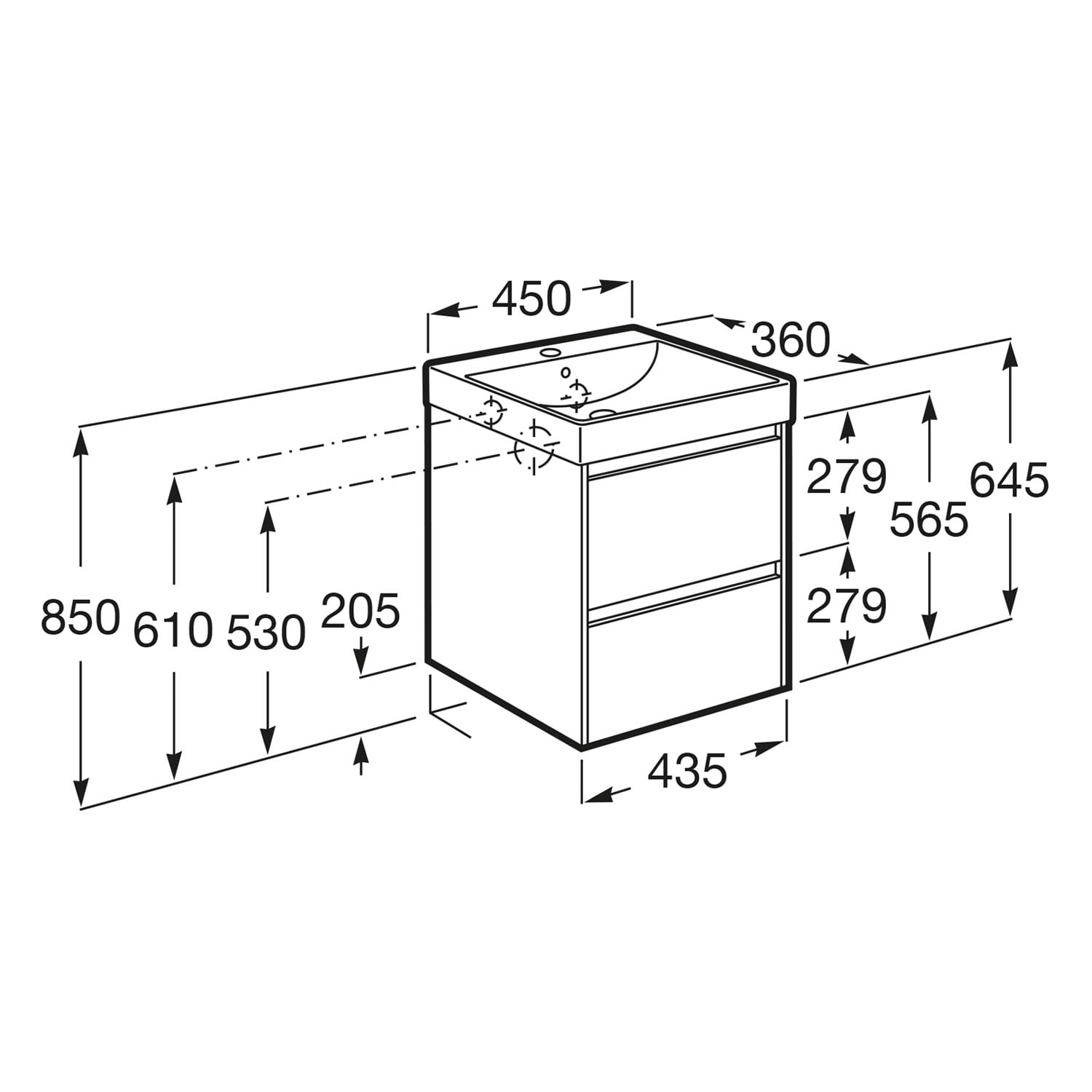 Roca Ona Waschtischunterbau 45 cm mit 2 Schubladen, geringere Tiefe
