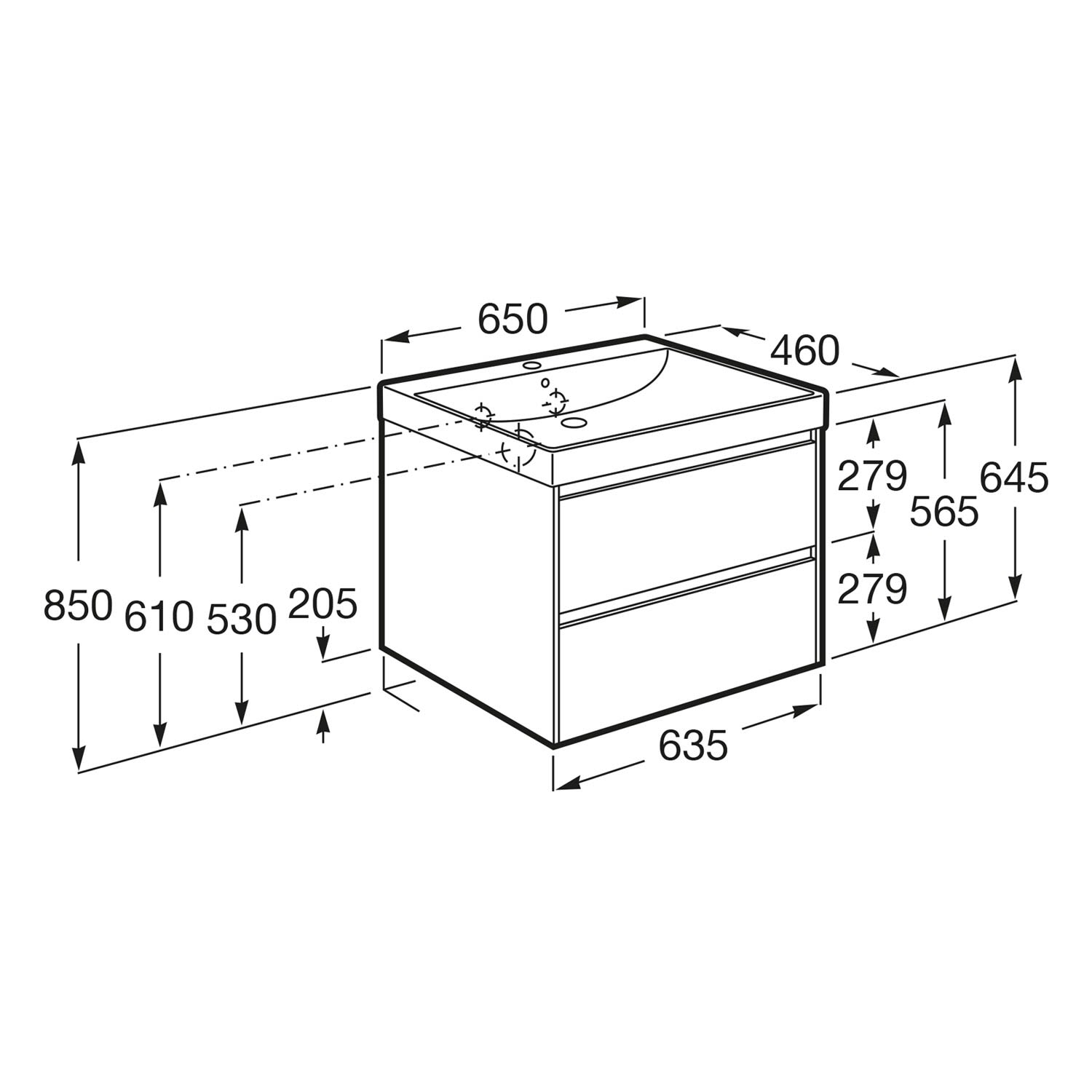 Roca Ona Waschtischunterbau 65 cm mit 2 Schubladen