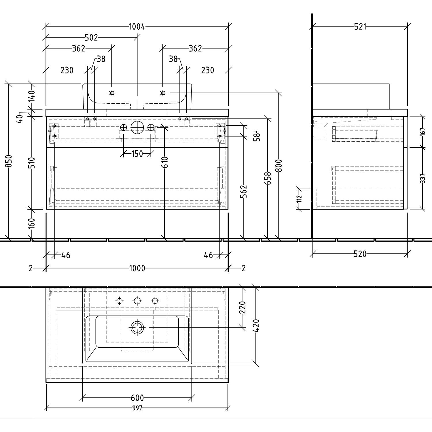 - oberer Auszug mit eckigem Siphonausschnitt