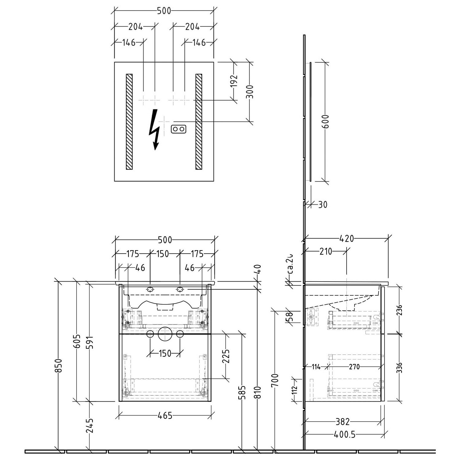 Sanipa 3way Möbelset-1 inkl. Lichtspiegel "LUCY", 50 cm, mit Push to open