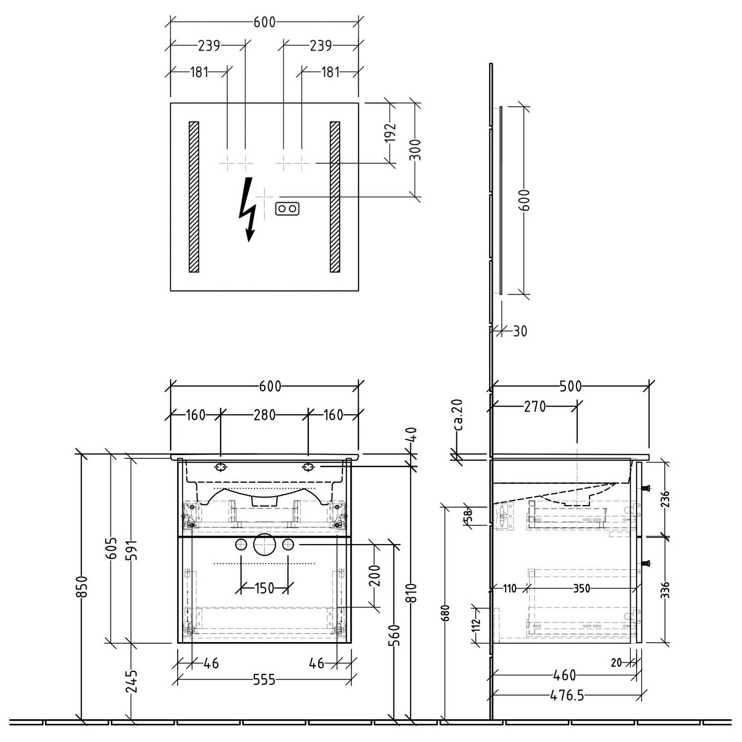 bestehend aus LED-Lichtspiegel und Waschtischunterschrank inkl. Keramik-Waschtisch von Villeroy & Boch
