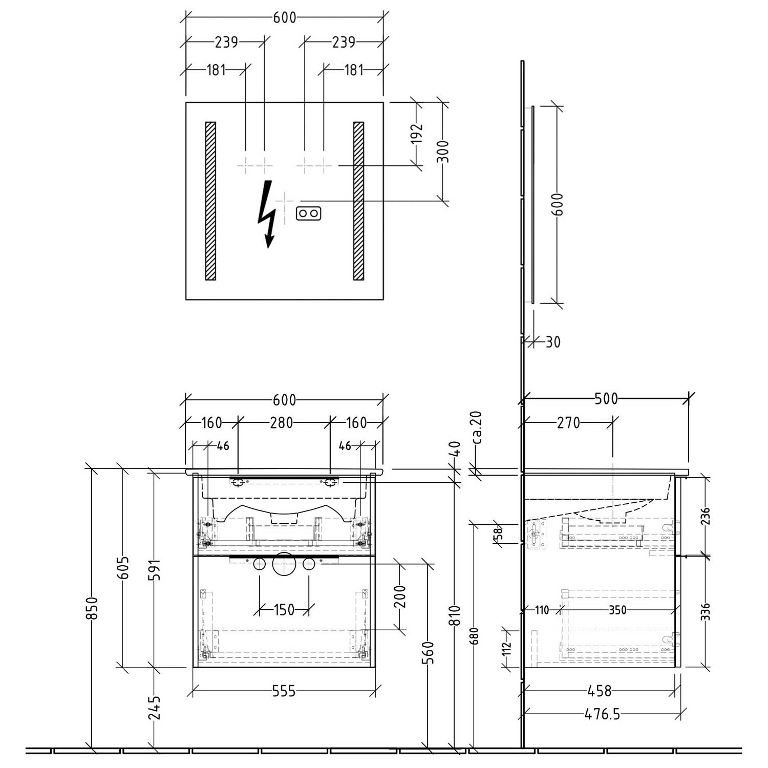 Sanipa 3way Möbelset-1 inkl. Lichtspiegel "LUCY", 60 cm, mit Aufsatzgriffen