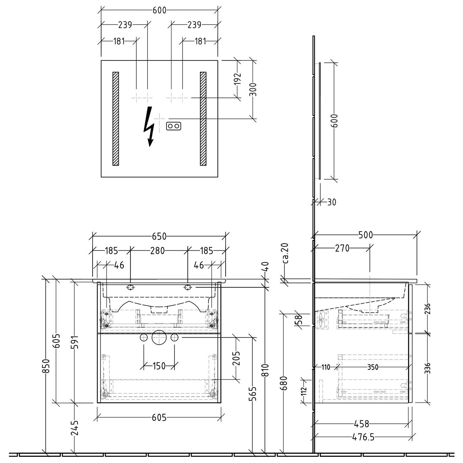 bestehend aus LED-Lichtspiegel und Waschtischunterschrank inkl. Keramik-Waschtisch von Villeroy & Boch