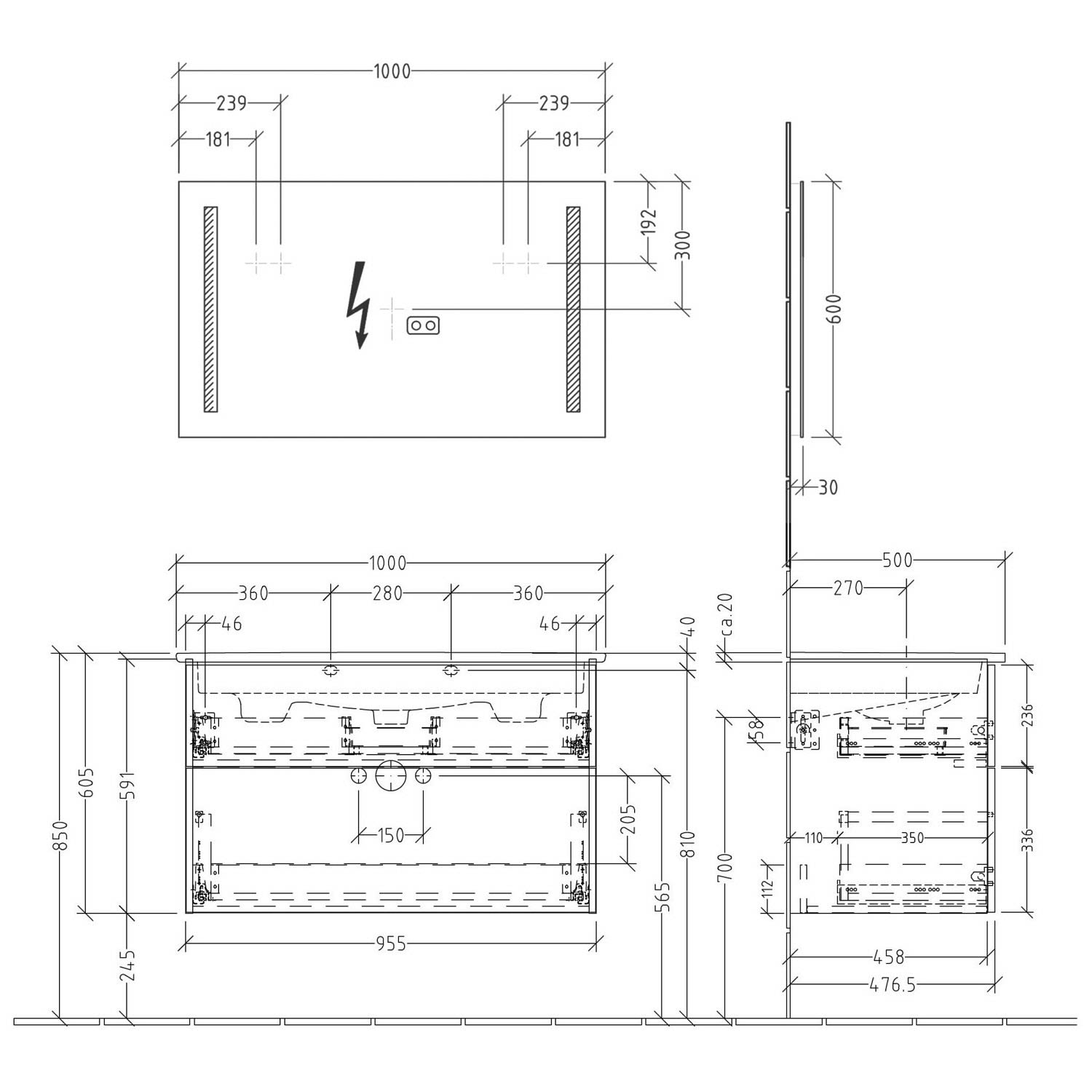 bestehend aus LED-Lichtspiegel und Waschtischunterschrank inkl. Keramik-Waschtisch von Villeroy & Boch