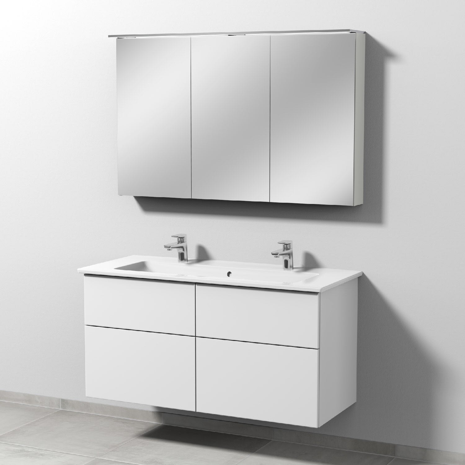 Sanipa 3way Möbelset-1 inkl. Spiegelschrank "MALTE", 120 cm, mit Push to open, Doppelwaschtisch