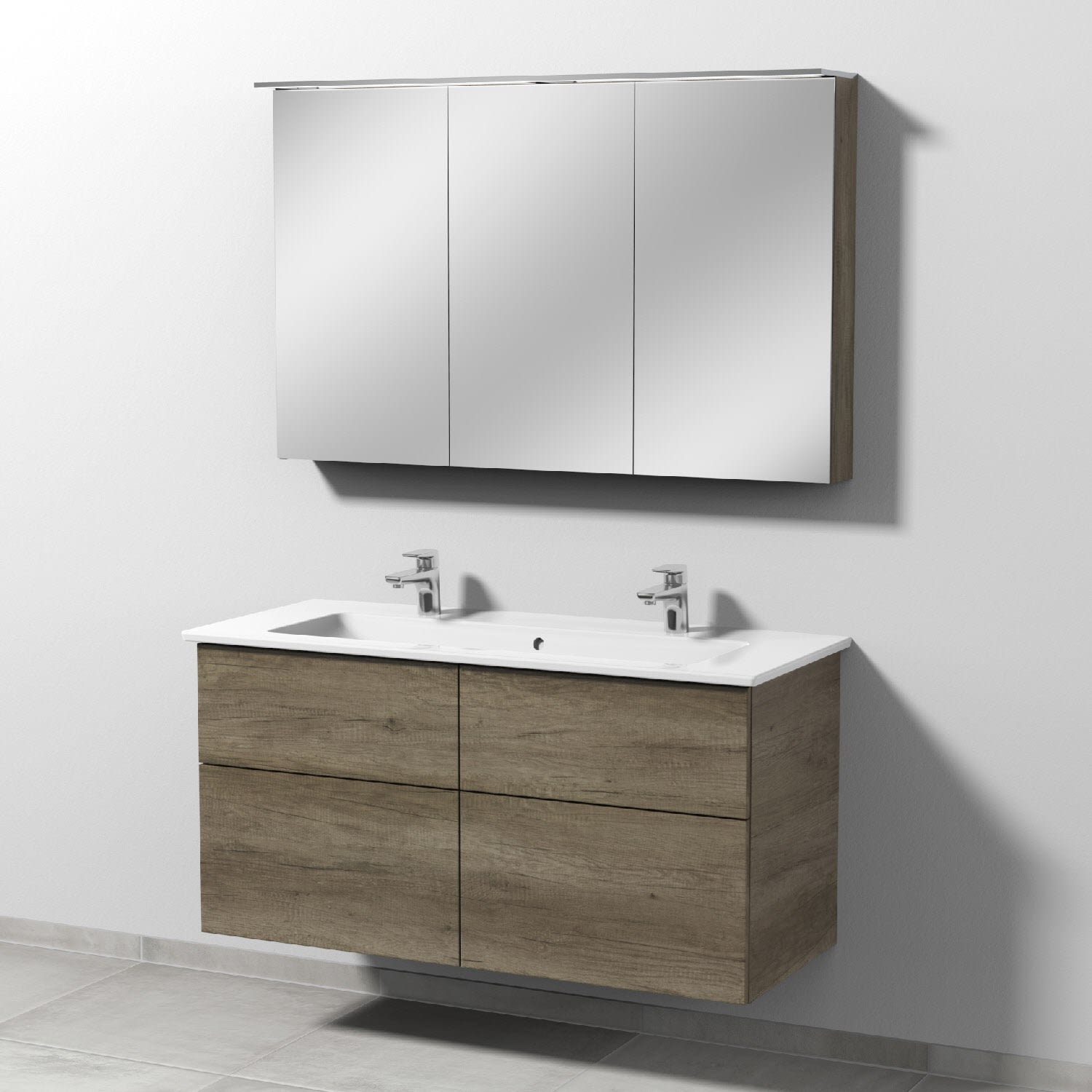 Sanipa 3way Möbelset-1 inkl. Spiegelschrank "MALTE", 120 cm, mit Push to open, Doppelwaschtisch