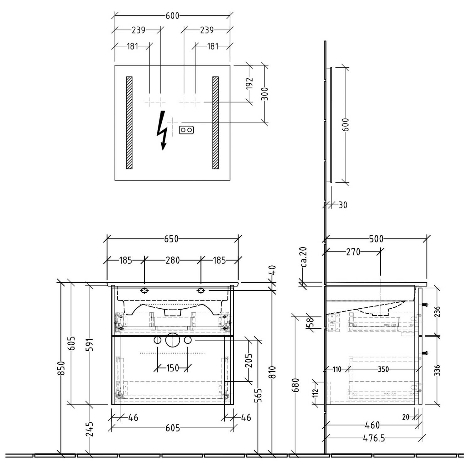 Sanipa 3way Möbelset-2 inkl. Lichtspiegel "LUCY", 65 cm