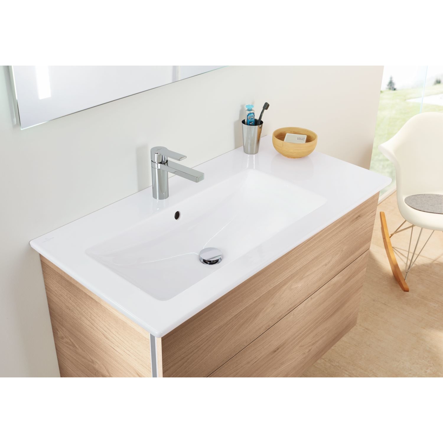 bestehend aus LED-Lichtspiegel und Waschtischunterschrank inkl. Keramik-Waschtisch von Villeroy & Boch