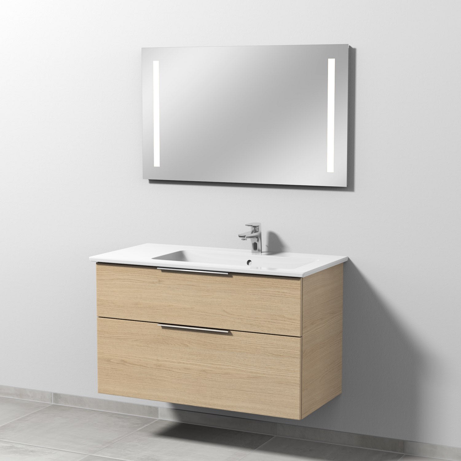 Sanipa 3way Möbelset-2 inkl. Lichtspiegel "LUCY", 100 cm, mit Aufsatzgriffen, Becken rechts