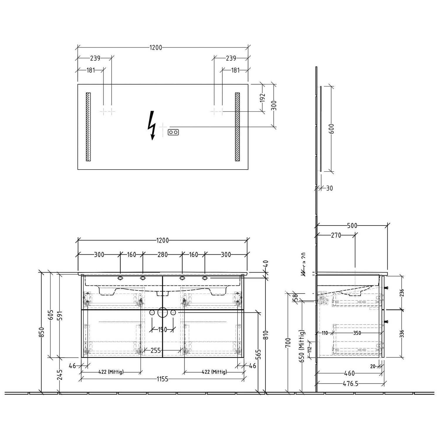 bestehend aus LED-Lichtspiegel und Waschtischunterschrank inkl. Keramik-Waschtisch von Villeroy & Boch