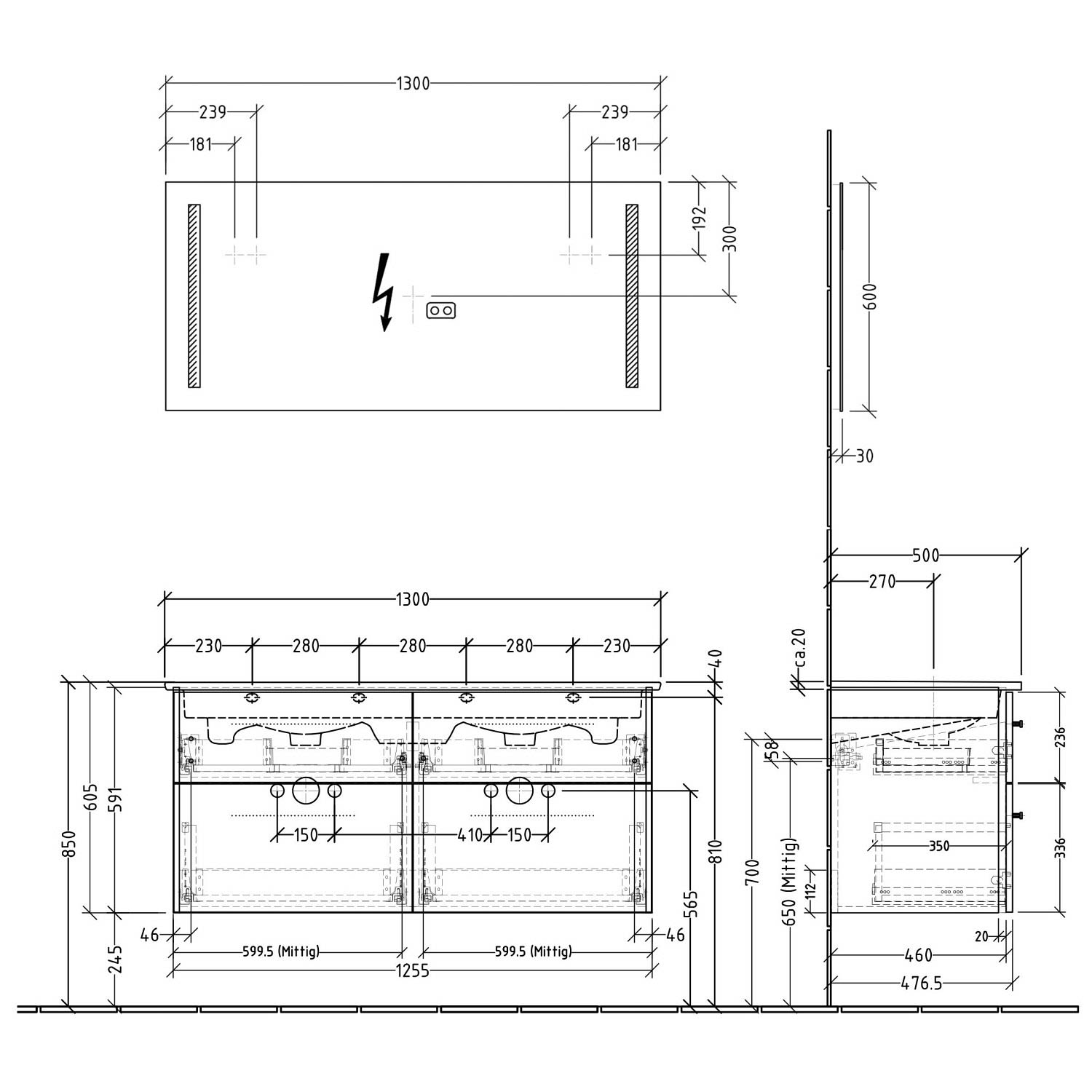 bestehend aus LED-Lichtspiegel und Waschtischunterschrank inkl. Keramik-Waschtisch von Villeroy & Boch