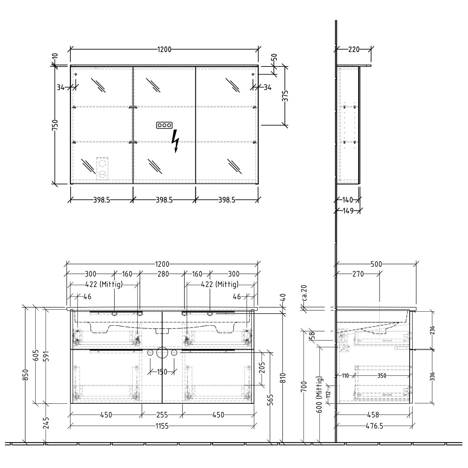 - Breite: 120 Tiefe inkl. Leuchte: 22 Höhe: 76 cm