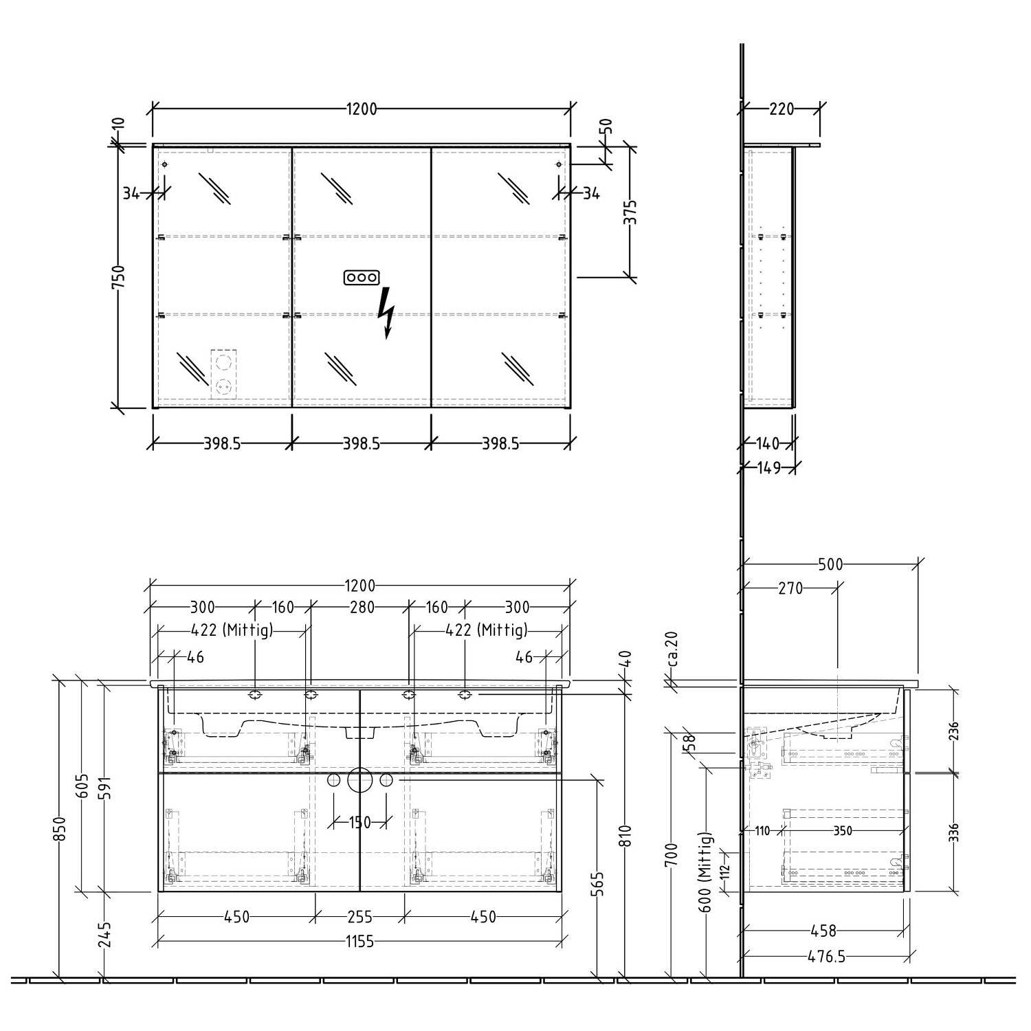 Sanipa 3way Möbelset-2 inkl. Spiegelschrank "MALTE", 120 cm, mit Push to open
